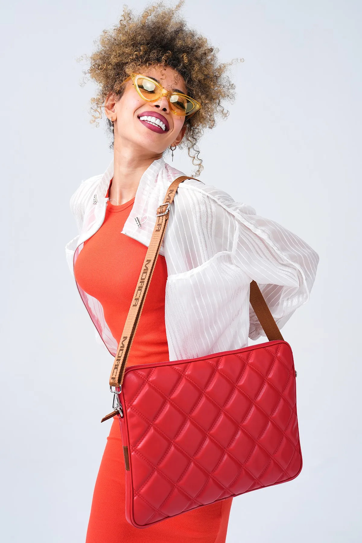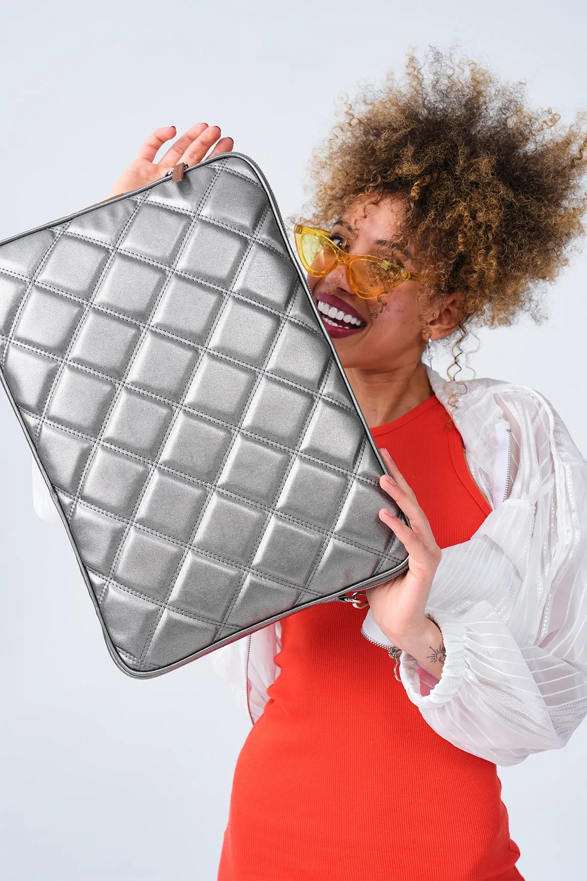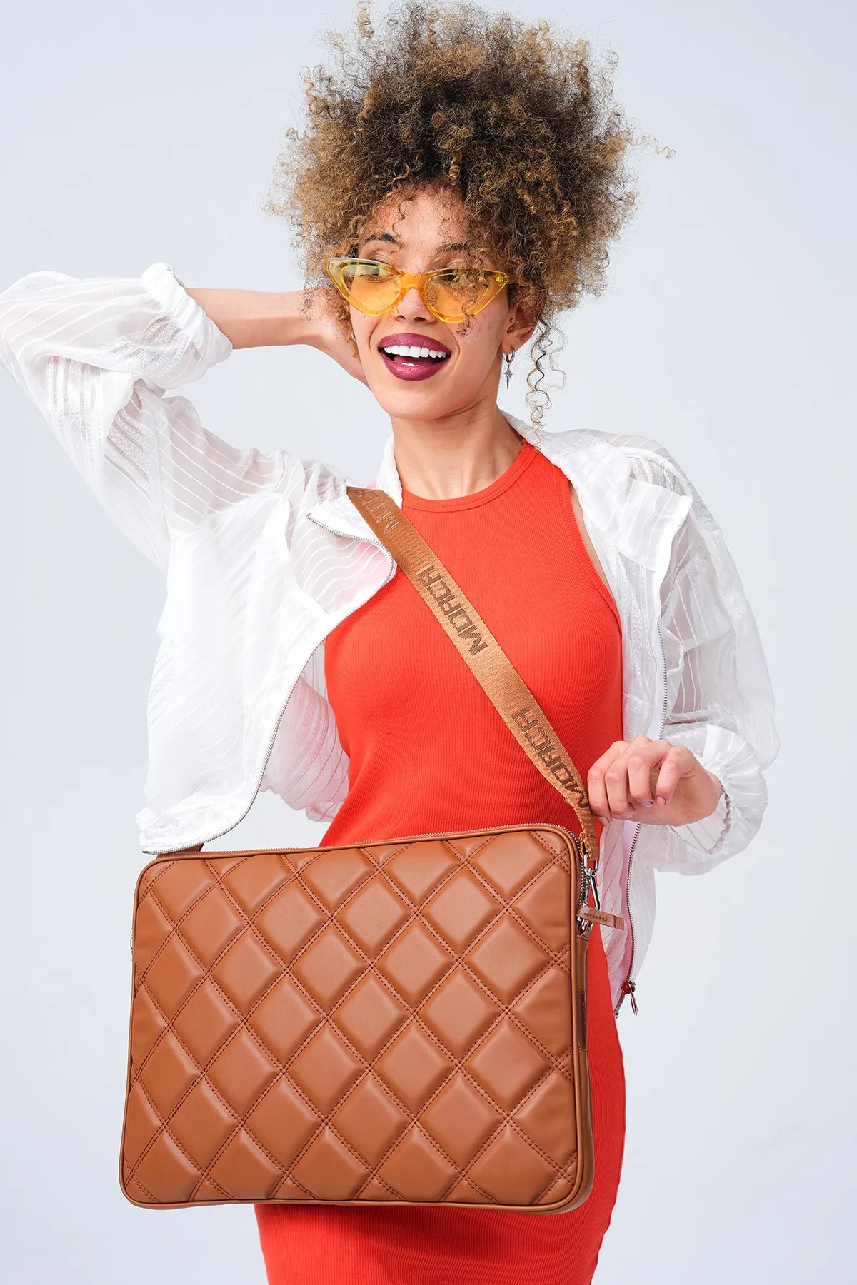 6 inç boyutundaki laptoplarınız için özel olarak tasarlanmış, bej renkli kapitone desenli laptop kılıfı