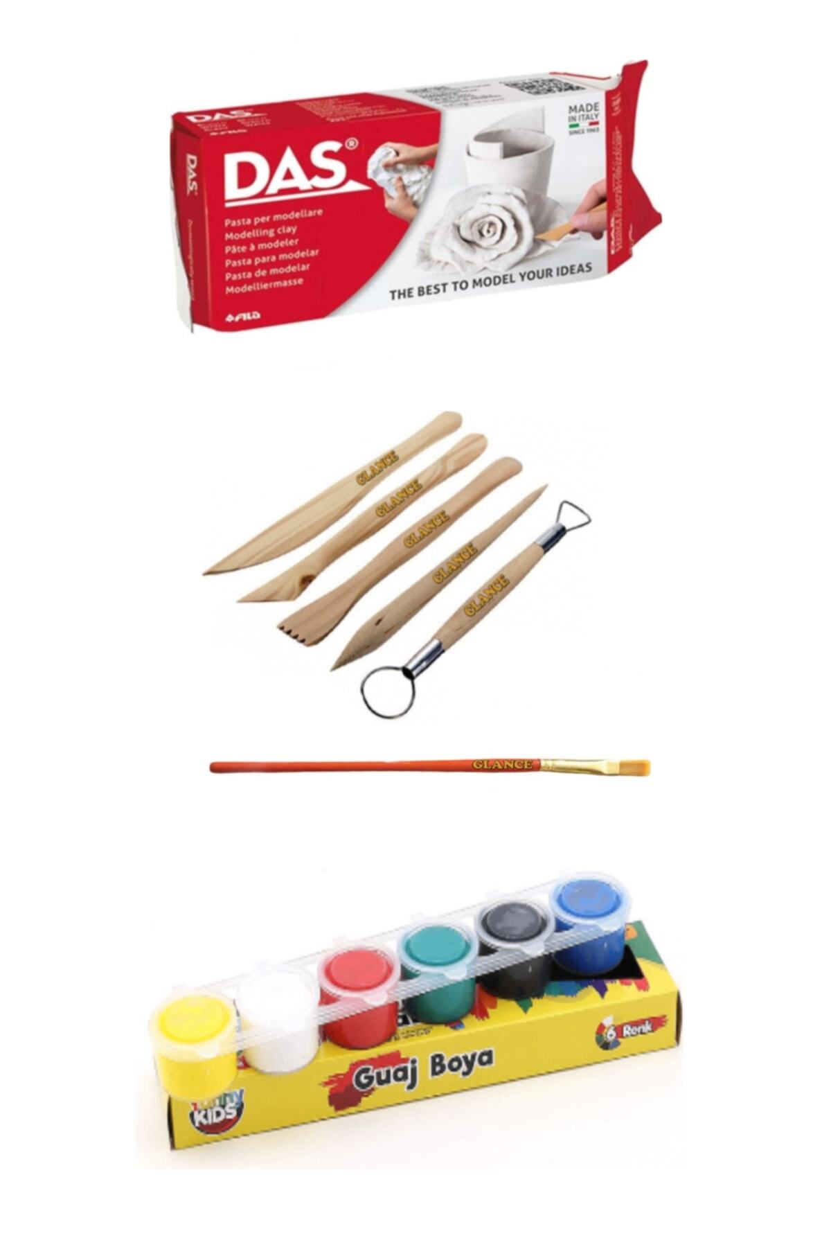 Das Beyaz Seramik Kili 500 GR (1 Adet) Glance Modelaj Kil Başlangıç Aahşap Seti 5 Li (1 Adet) Glance Fırça (1 Adet) Rich Funny Kids Guaj Boya 6'LI Set 15 CC (1 Adet)