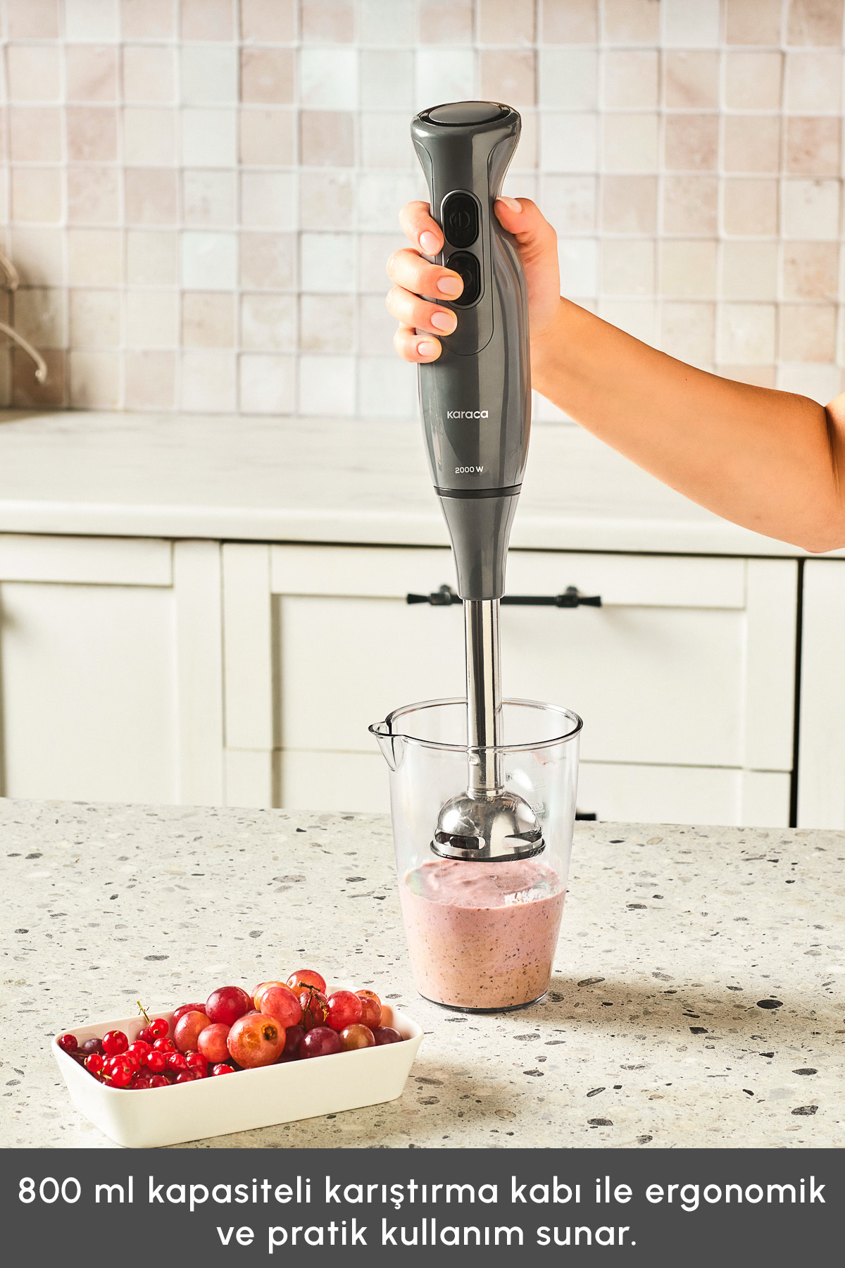 800 ml kapasiteli karıştırma kabı ile sebze ve meyveleri kolayca ezerek, püre, ayran vb. karışımları kolaylıkla hazırlayabilirsiniz.