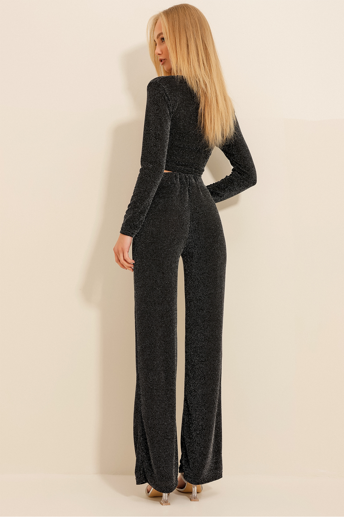 Geniş Paça, Simli, Günlük Giyimde Konforlu Kullanım Sağlayan Modeli İle Her Tarz Crop, Tişört, Kazak Ve Gömlekler İle Kolayca Kombinleyip Tarz Bir Görünüm Sağlayabileceğiniz, Simli Palazzo Pantolon Sizlerle!!!!