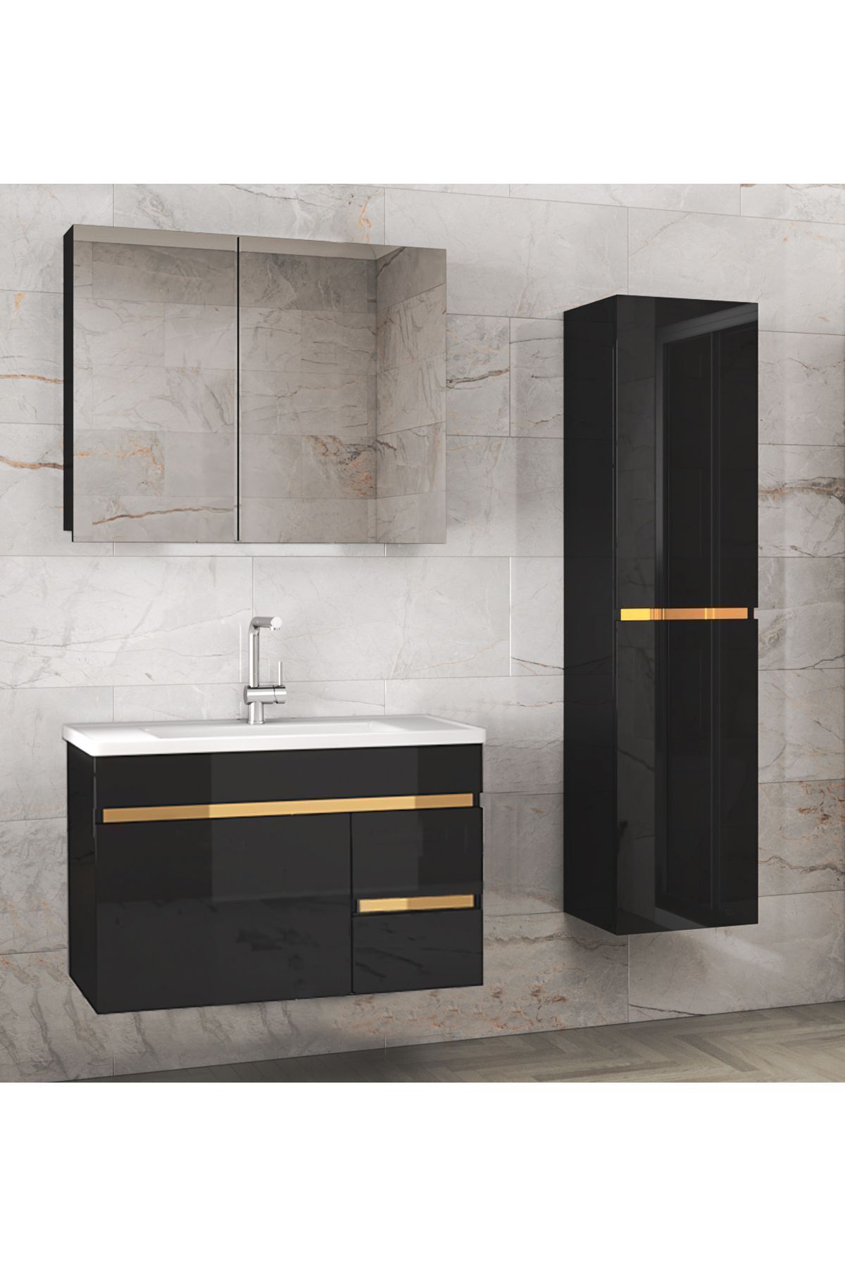 Alfa banyo viosen beyaz (80 +35) 115 cm mdf-Hazır kurulu-Aynalı - Seramik lavabolu banyo dolabı