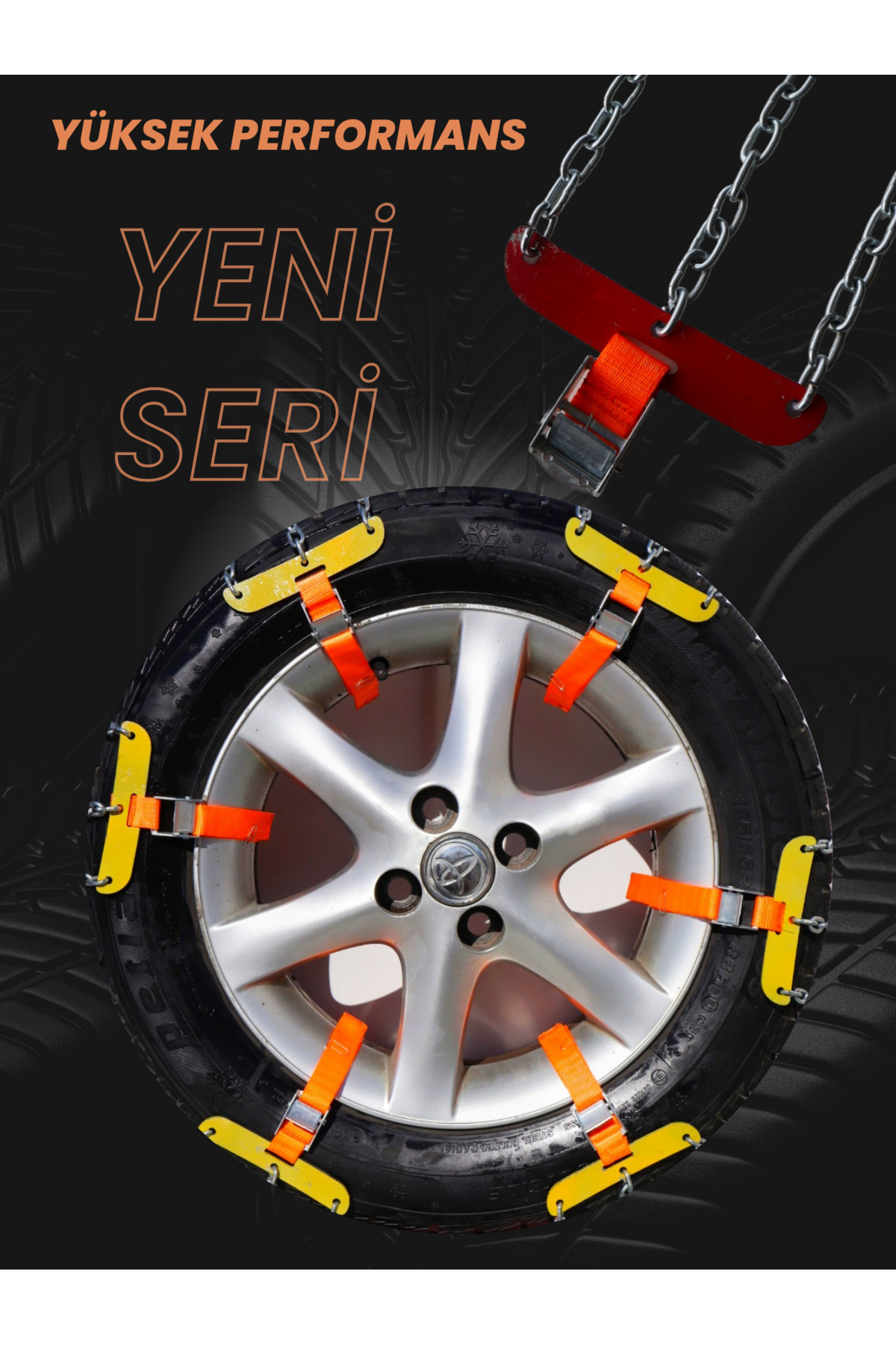 Özellikleri: -Isının çok düştüğü kış ayları için tasarlanmıştır. Düşük sıcaklıklara dayanıklı malzemeden üretilmiştir. -Zeminle tam temas sağlar ve kayganlığı önler. -Ergonomik yapısı sayesinde titreşim minimuma indirgenmiştir. -Titreşimi ve gürültüyü azaltmak ve rahat bir sürüş sağlamak için tasarlanmıştır. -Minimum fren mesafesi ve maksimum çekiş ile üstün performans sağlar. -Gergi kolonları ve Tokası özel üretim olup kaydırma yapmaz. Dikkat gereken konular -Kar, çamur, kum haricinde daha uzun ömürlü olması için asfaltta kullanmayınız. -Saatte 40 kilometre hız sınırını aşmayınız. -Mümkün oldukça ani fren kullanmayın, ani dönüşlerden kaçının. -Kar, çamur veya kumlu bölgelerde kullanımı uygundur. Lastik zinciri, kar, çamur veya kumda mükemmel bir kontrolünü sağlar. Lastiğe veya yola zarar vermez. Kurulum -Kurulumu ve çıkartılması çok basit olup zamandan tasarruf edebilirsiniz. Birkaç dakika içinde kurulum sağlamak için tasarlanmıştır.