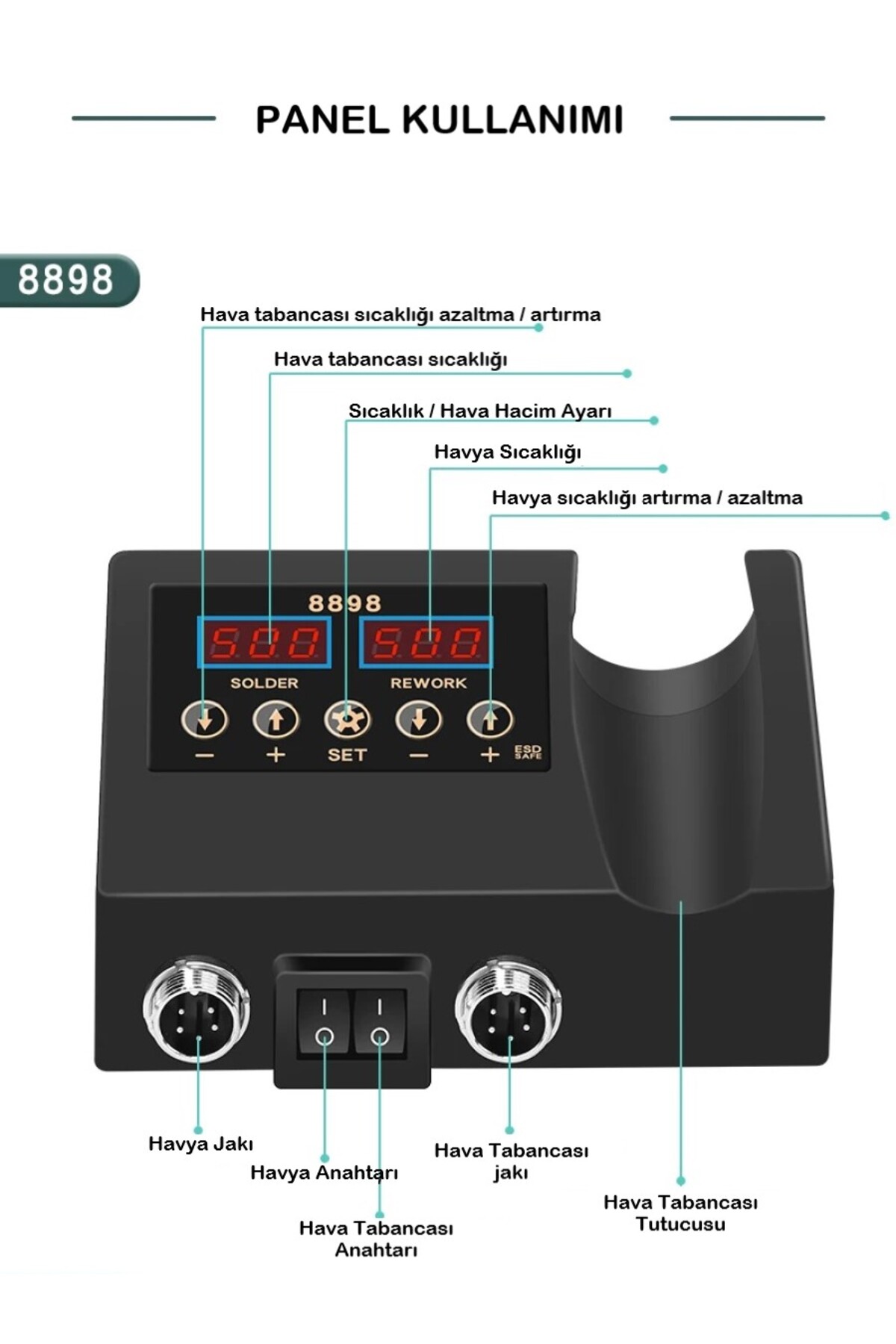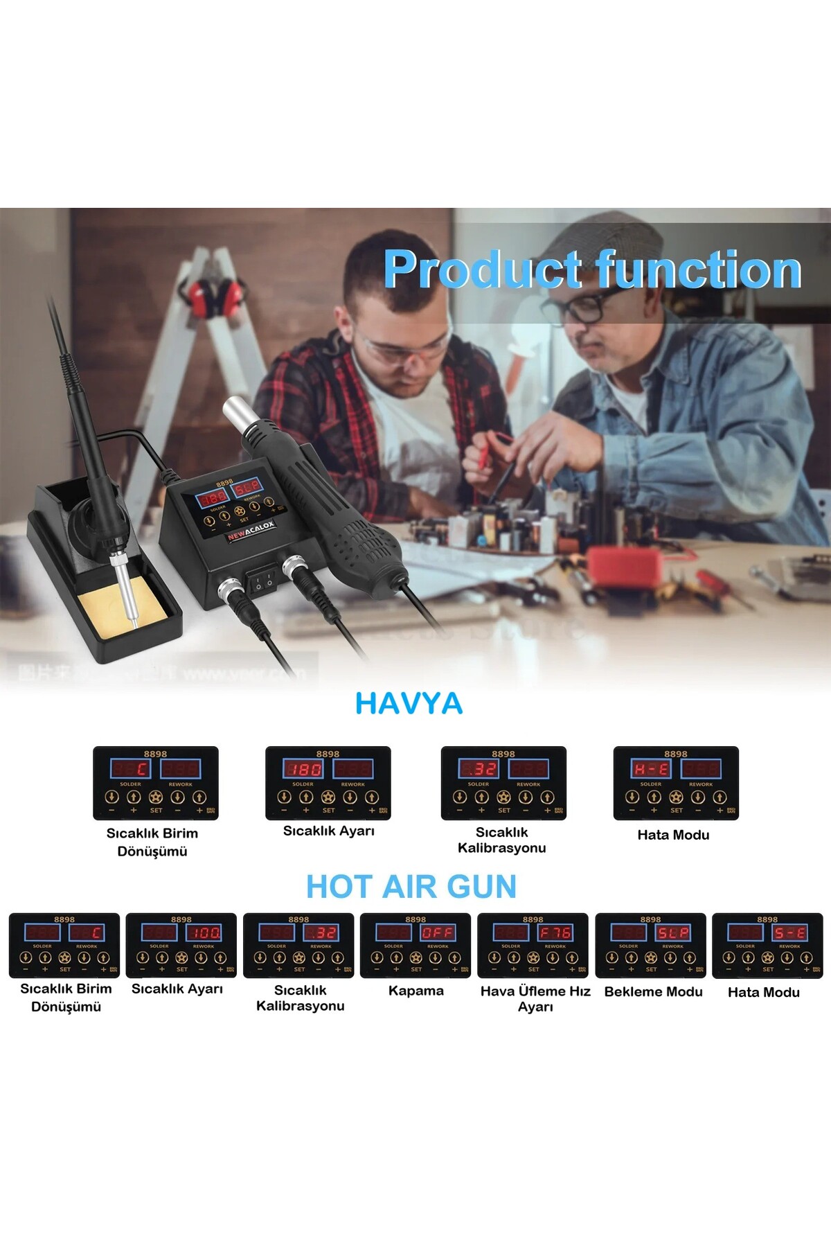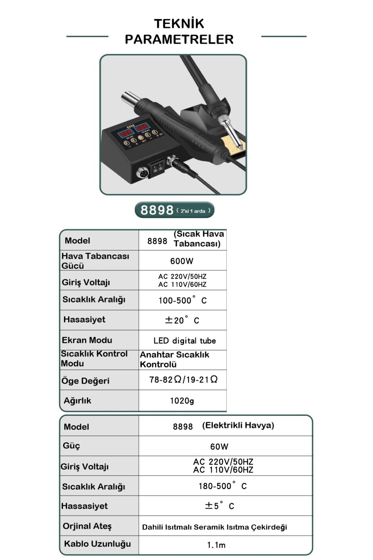 2İN1 8898 LED DJİTAL REWORK LEHİMLEME İSTASYONU SICAK HAVA TABANCASI ELEKTRİKLİ HAVYA