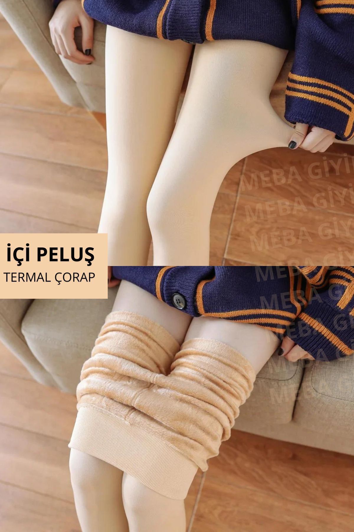 Yüksek bel çift dikişli yumuşak ve rahat termal içi komple peluşlu tayt.