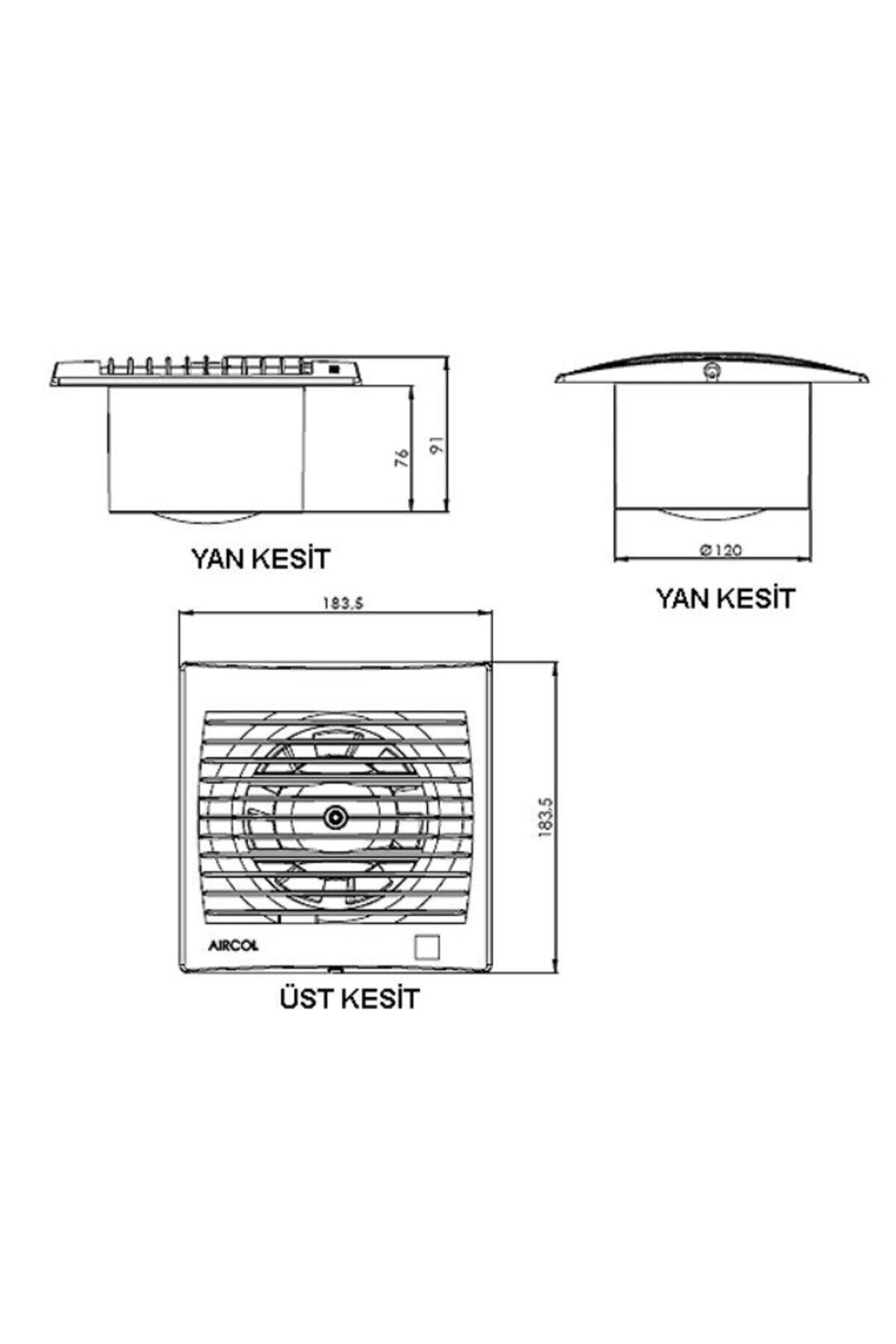 • Aircol 120 sessiz dekoratif banyo tuvalet havalandırma fanı 160m3 Özellikler Çap:12cm