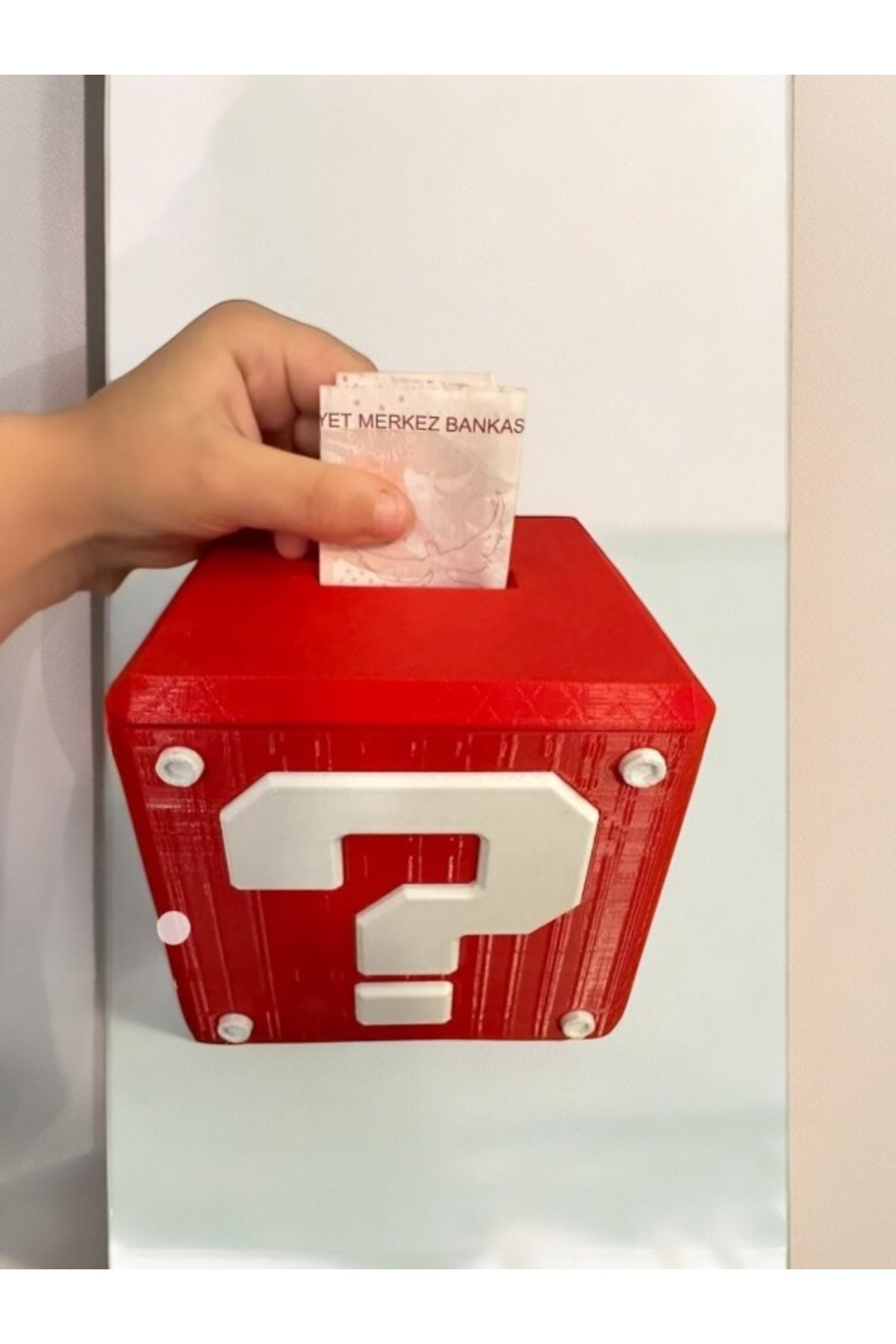 Canlı kırmızı rengiyle dikkat çeken Super Mario kumbara, çocukların odalarına neşe katıyor