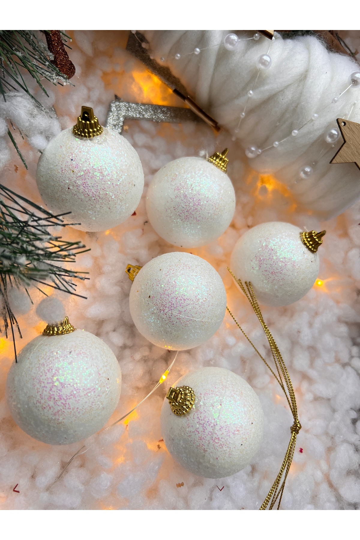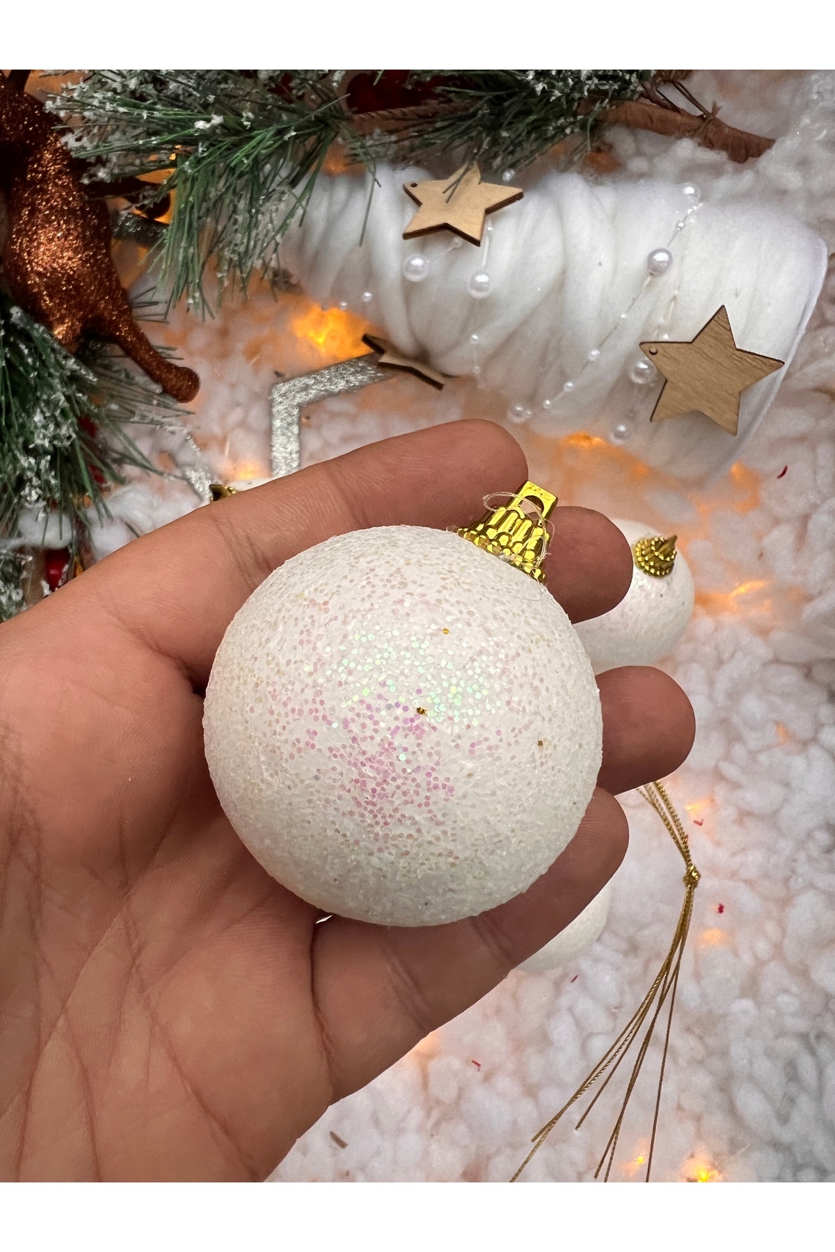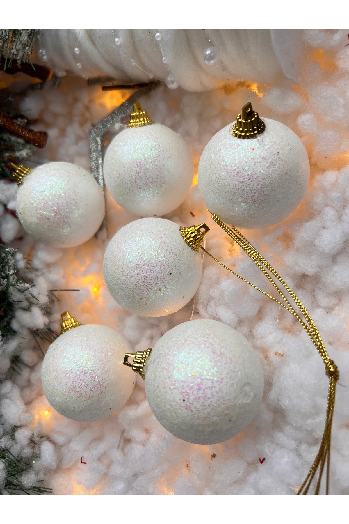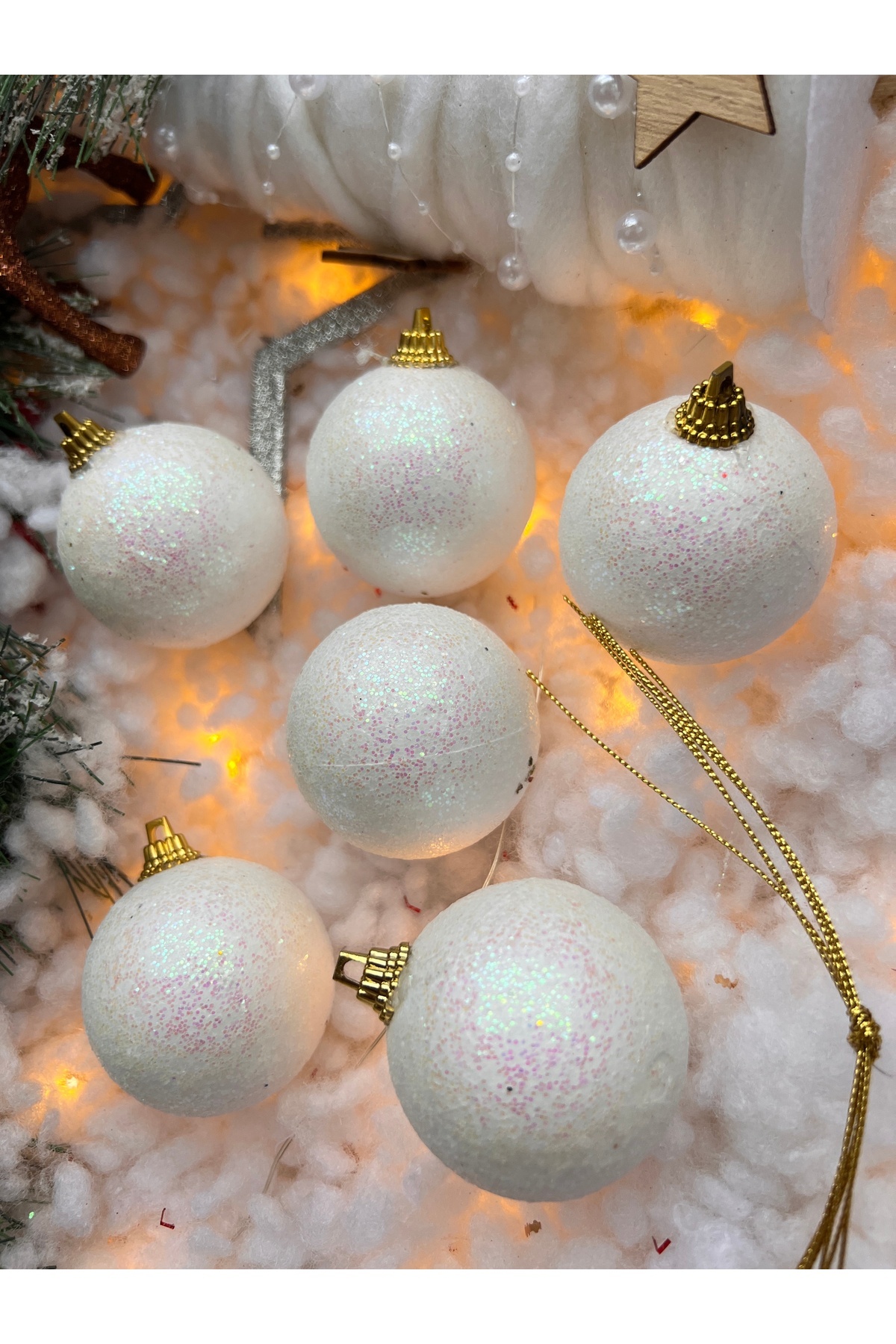 - Yılbaşı ruhunu evinize taşıyan parıltılı beyaz cici top süs, 5 cm boyutuyla mekanınıza sıcaklık ve neşe katar.