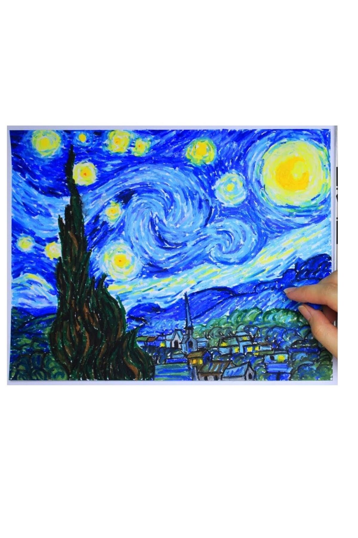 Van Gogh yağlı pastelleri, tozsuz, son derece yumuşak ve pürüzsüz bir döşeme için saf pigmentler, mineral yağlar ve mum bağlayıcılarla yapılmış parlak renklerdir