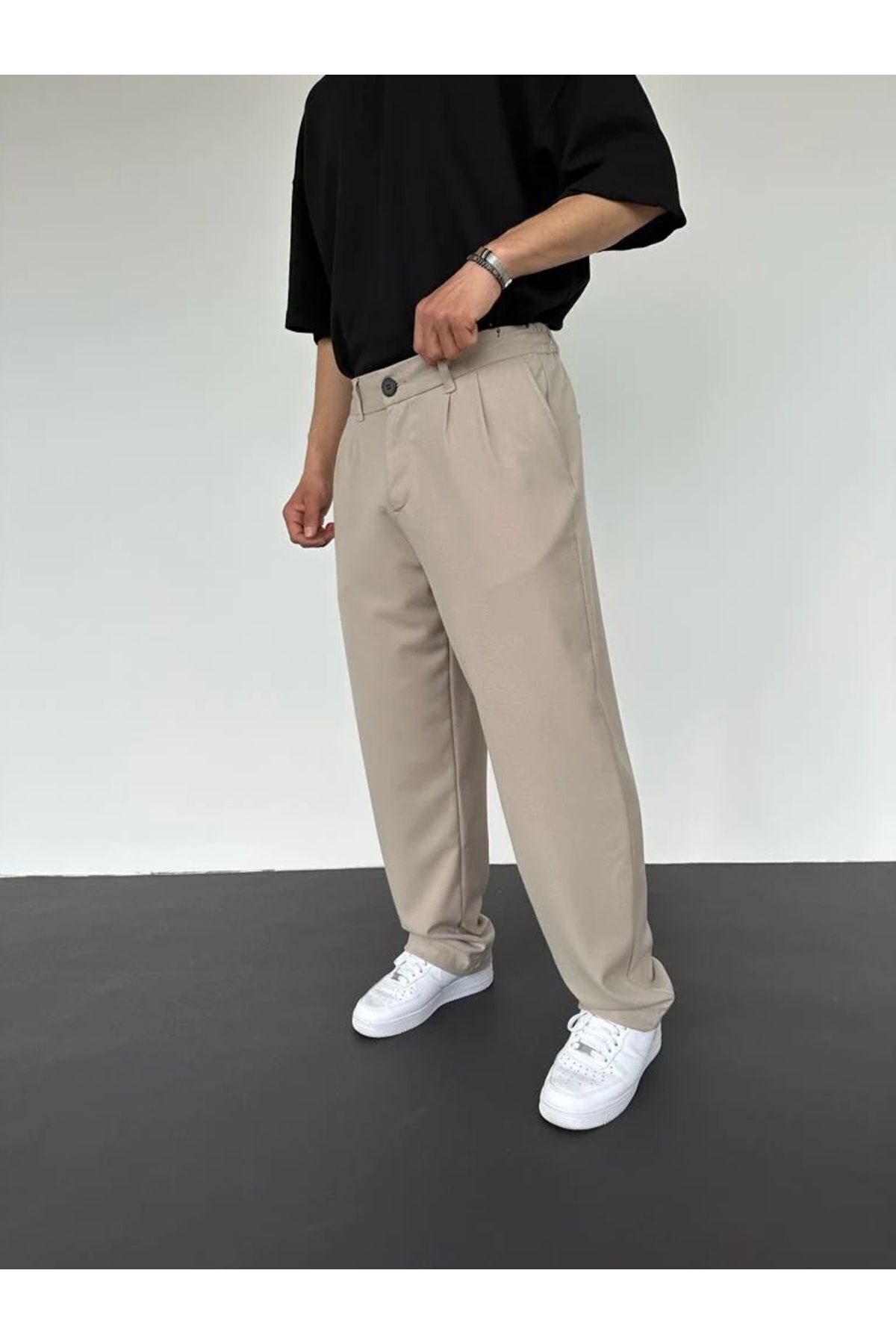 Düz deseni ve boru paça tasarımı ile sade ve zamansız bir şıklık sunar