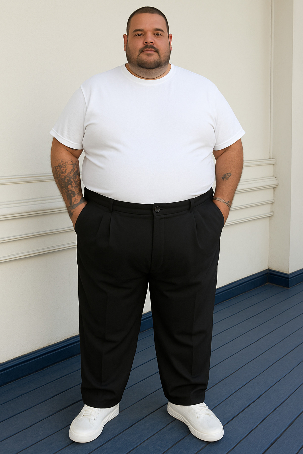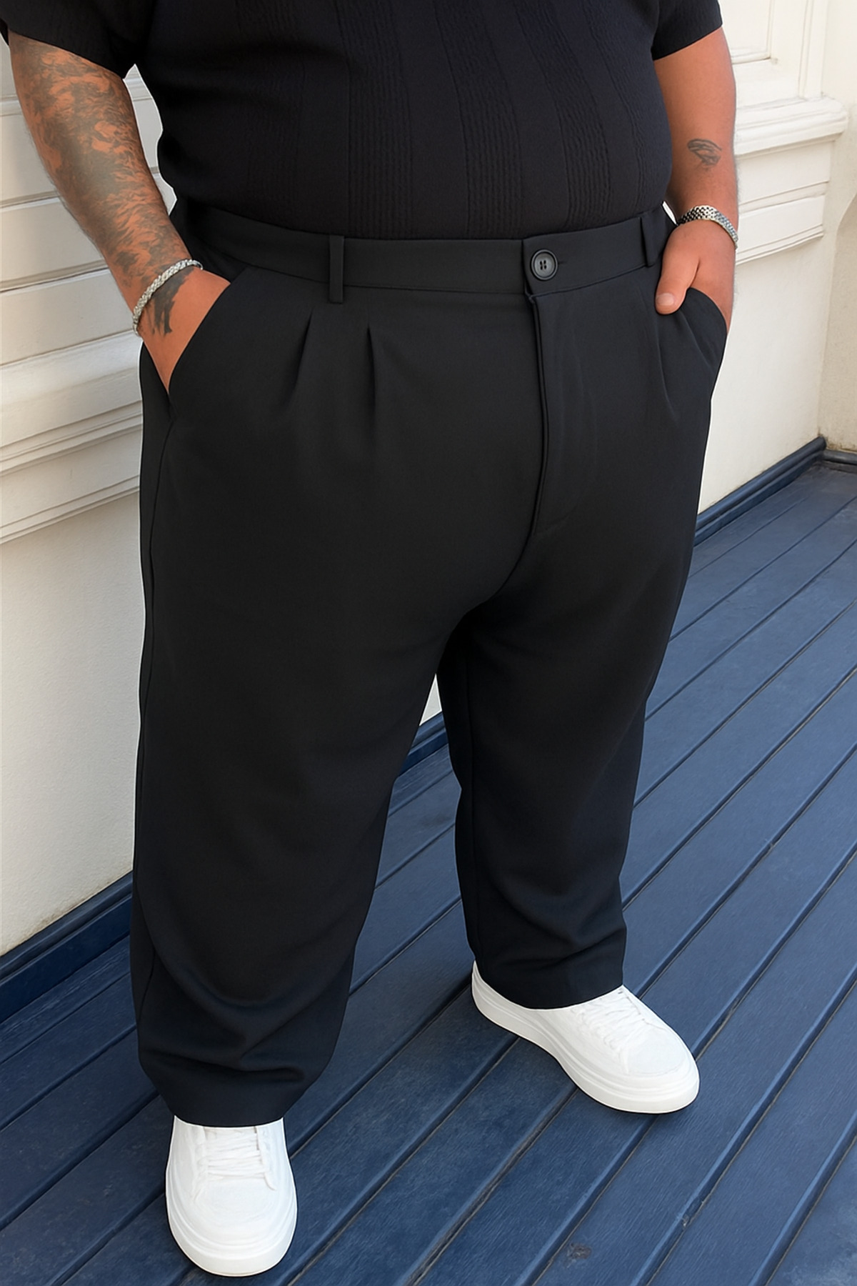 Düz deseni ve boru paça tasarımı ile sade ve zamansız bir şıklık sunar