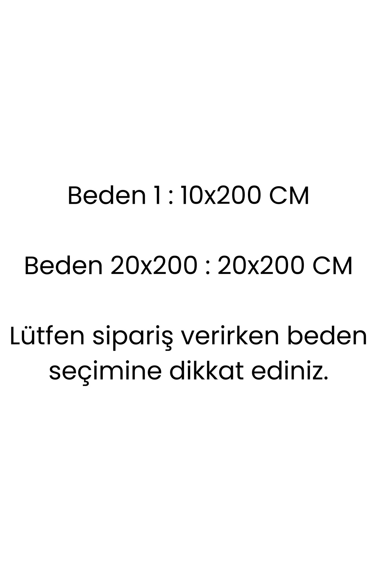 Beden 20x200 seçerseniz ürün ölçüsü 20x200 cm'dir.