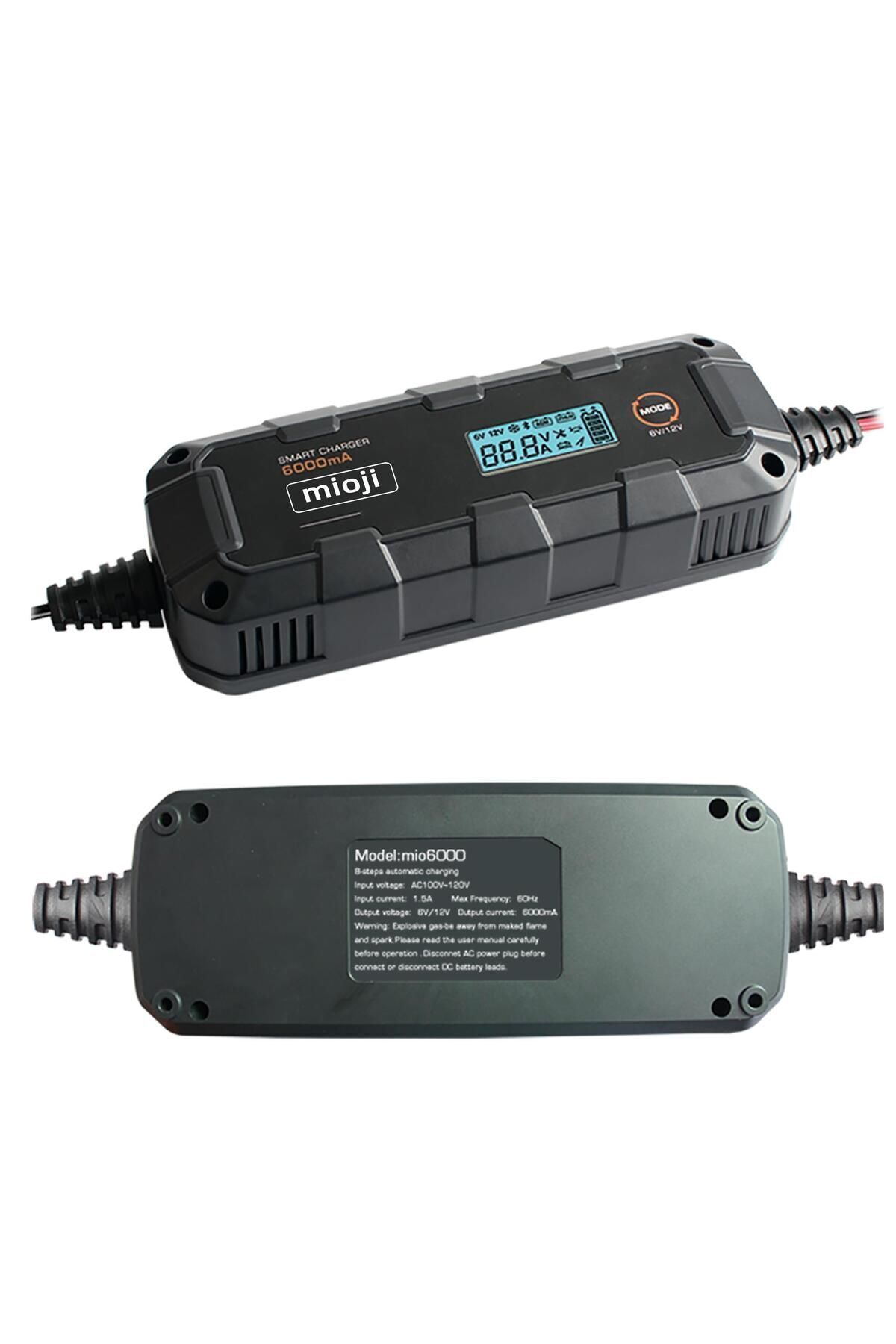 Mio 6000 Araç Akü Şarj Cihazı Şarj etmeyi daha kolay ve daha profesyonel hale getirin Mio 6000 6V/12V 6000mA Akıllı Akü Şarj Cihazı En gelişmiş damlama şarjı ve yüksek frekanslı darbeli kükürt giderme teknolojisini kullanır Tüm kurşun-asitli, sulu veya sızdırmaz bakım gerektirmeyen aküler için mükemmeldir (Lityum pil dahil) - (Sekiz şarj modu) Bu akü şarj cihazının sekiz şarj modu vardır