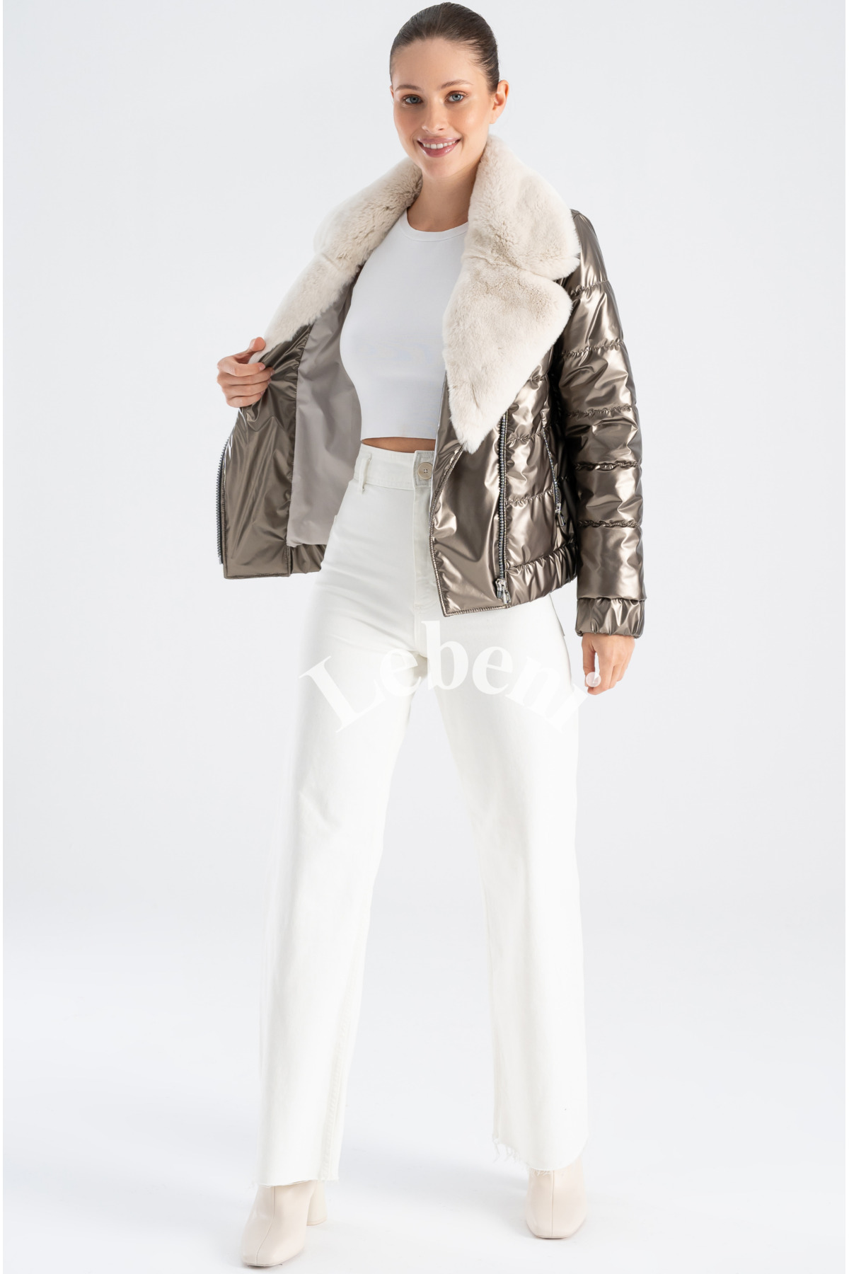 Modern kesimi ve parlak kumaşı ile kış gardırobunuzda fark yaratıyor.