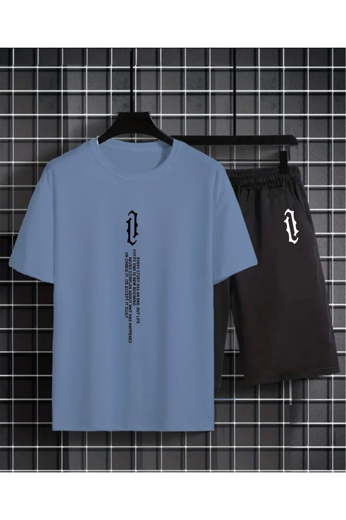 Dikey Basklı Oversize Alt Üst Takımı(T-SHİRT - EŞOFMAN ALTI)