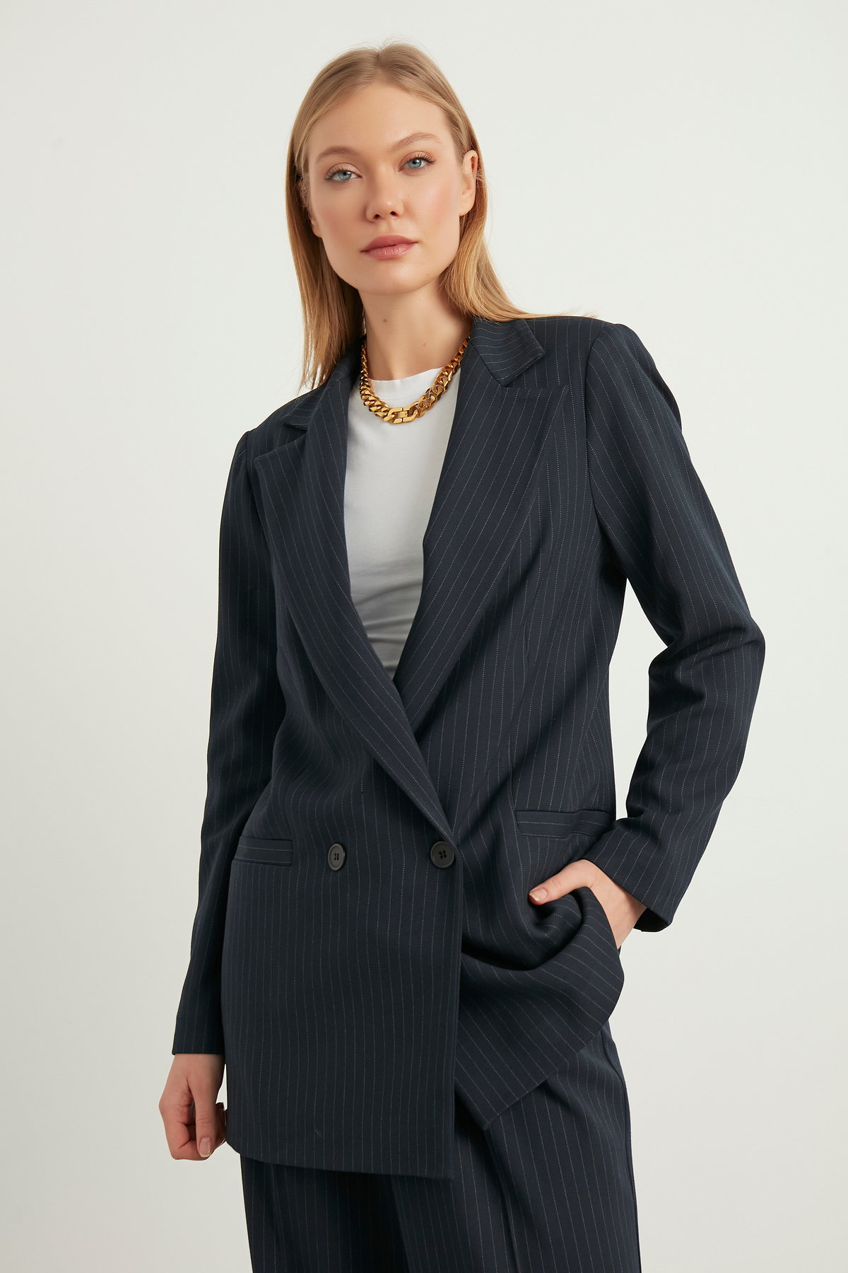 Ceket yaka detayı ile resmi ve günlük ortamlarda şıklığınızı korumanızı sağlar