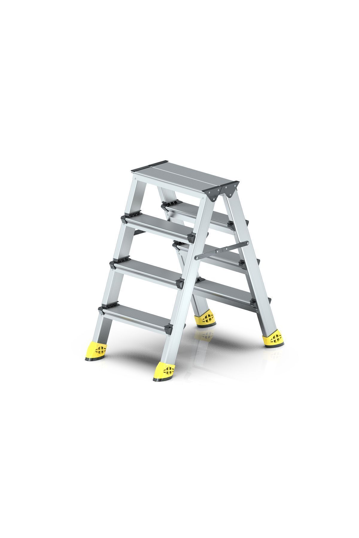 4+4 BASAMAKLI ÇİFT TARAFLI MERDİVEN 50X20 PROFİL 1. KADEME YÜKSEKLİK (KAPALI) : 87CM 2. KADEME YÜKSEKLİK (AÇIK) : 82CM AMBALAJ BOYUTU : 43X16X96 AĞIRLIK : 3.80 KG Özel alaşımlı alüminyum merdiven Kolay açılıp kapanabilme Çift taraflı çıkış ve kullanabilme Kullanıma hazır tek şıklı ambalaj Çizilmeyi önleyen plastik takozlar Kaymayı önleyen özel tasarımlı basamaklar Ev ve işyerlerinde dekoratif kullanım Çok hafif ve yük taşımada kuvvetli Uzun ömürlü paslanmaz maksimum mukavemet