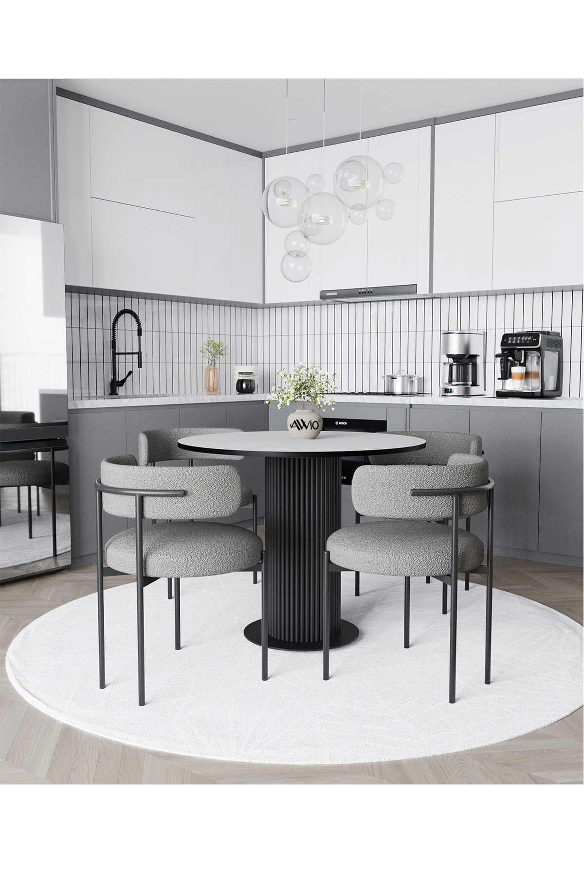 Modern tasarımıyla dikkat çeken Duru teddy sandalye 90x90 yuvarlak mutfak masası takımı, yemek odanızın şıklığını artırır