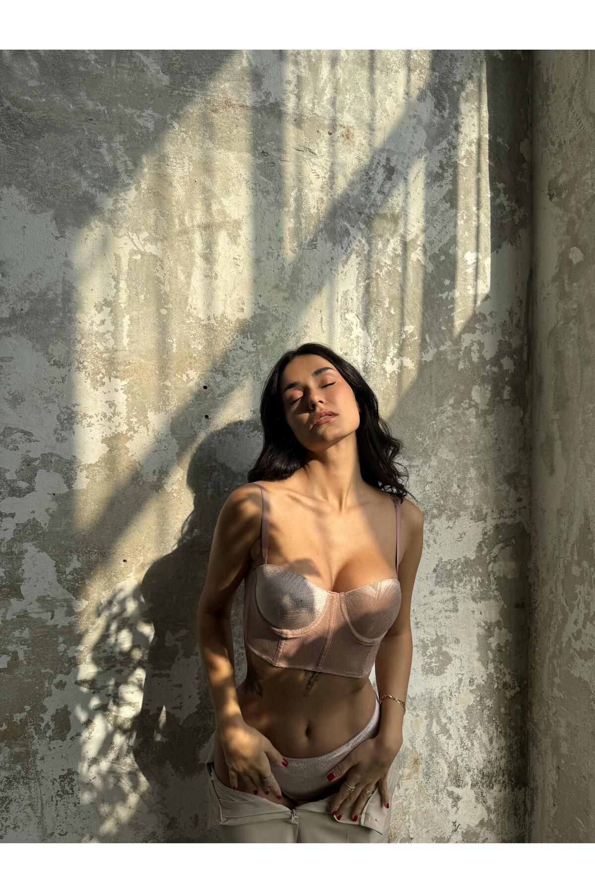 - Brazilian alt silueti ile modern ve feminen bir tarz yaratırken, büstiyerin balenli üst silueti mükemmel destek sağlar.