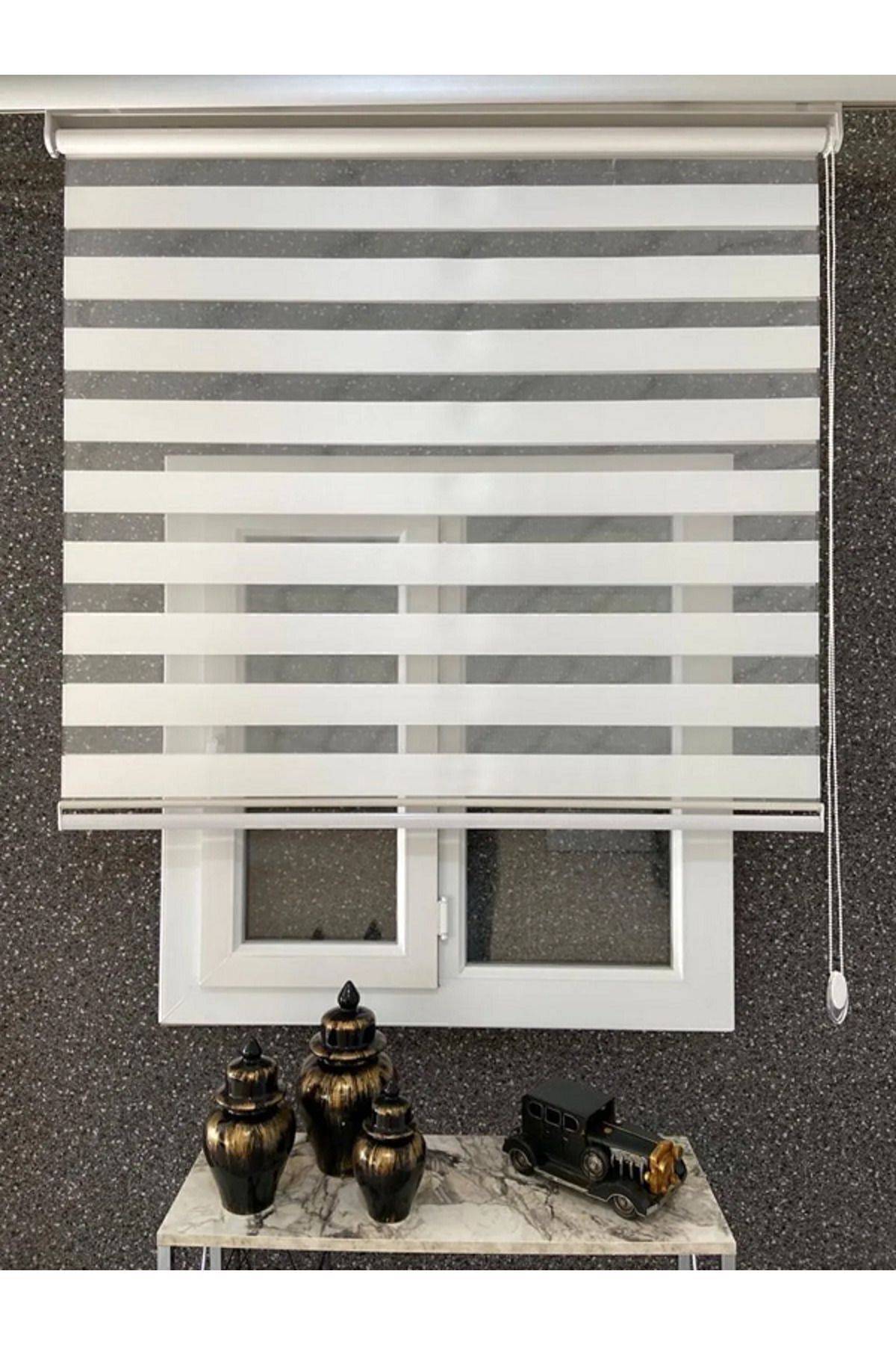 Beyaz Geniş Pliseli Zebra Stor Perde Eteği Dilimli (alüminyum Kasa+metal ayak