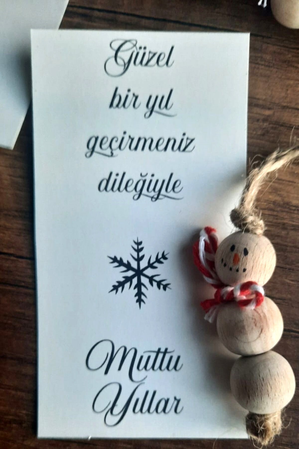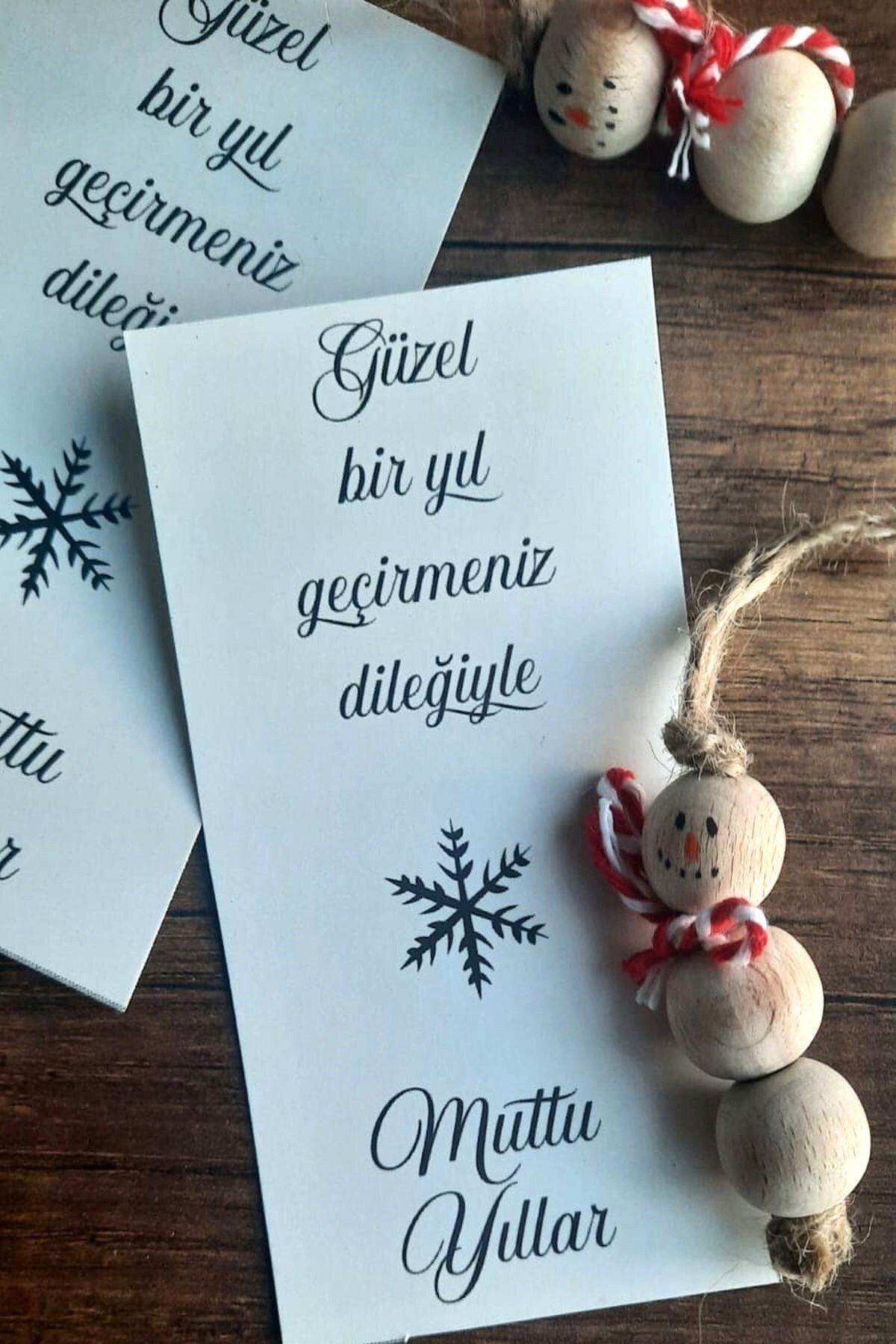 5'li Jelatinli Paketli - Mutlu Yıllar Kartlı Kardan Adam Süs - Yılbaşı Hediyesi - Yılbaşı Süsü