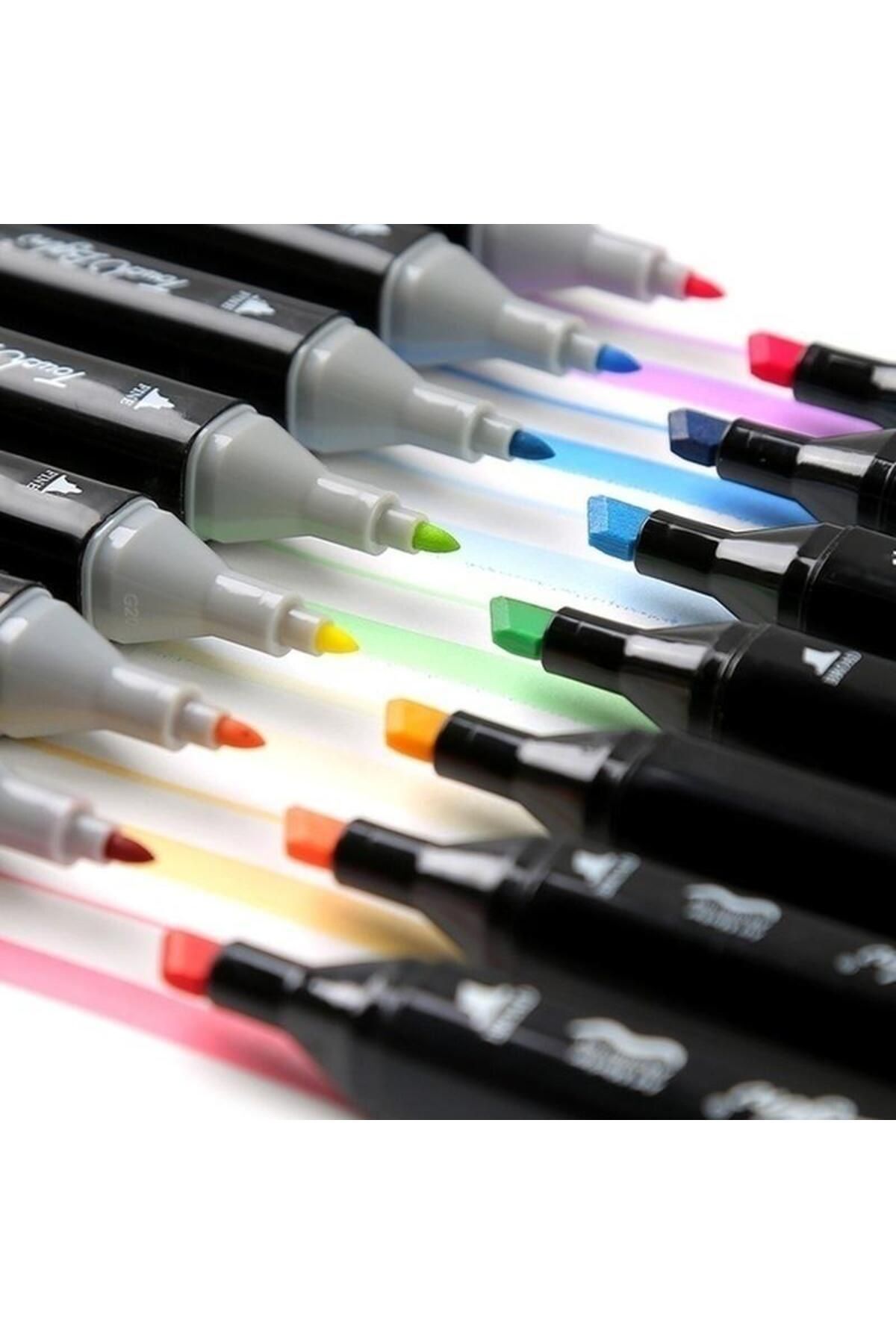 Touch Çift Taraflı Uçlu Marker Keçeli Kalem Seti 36'lı Çantalı Markör Animasyon, illüstrasyon, mimari işlemeler ve iç tasarım eskizlerinden çok çeşitli kullanımlar için ideal olan parlak renkler