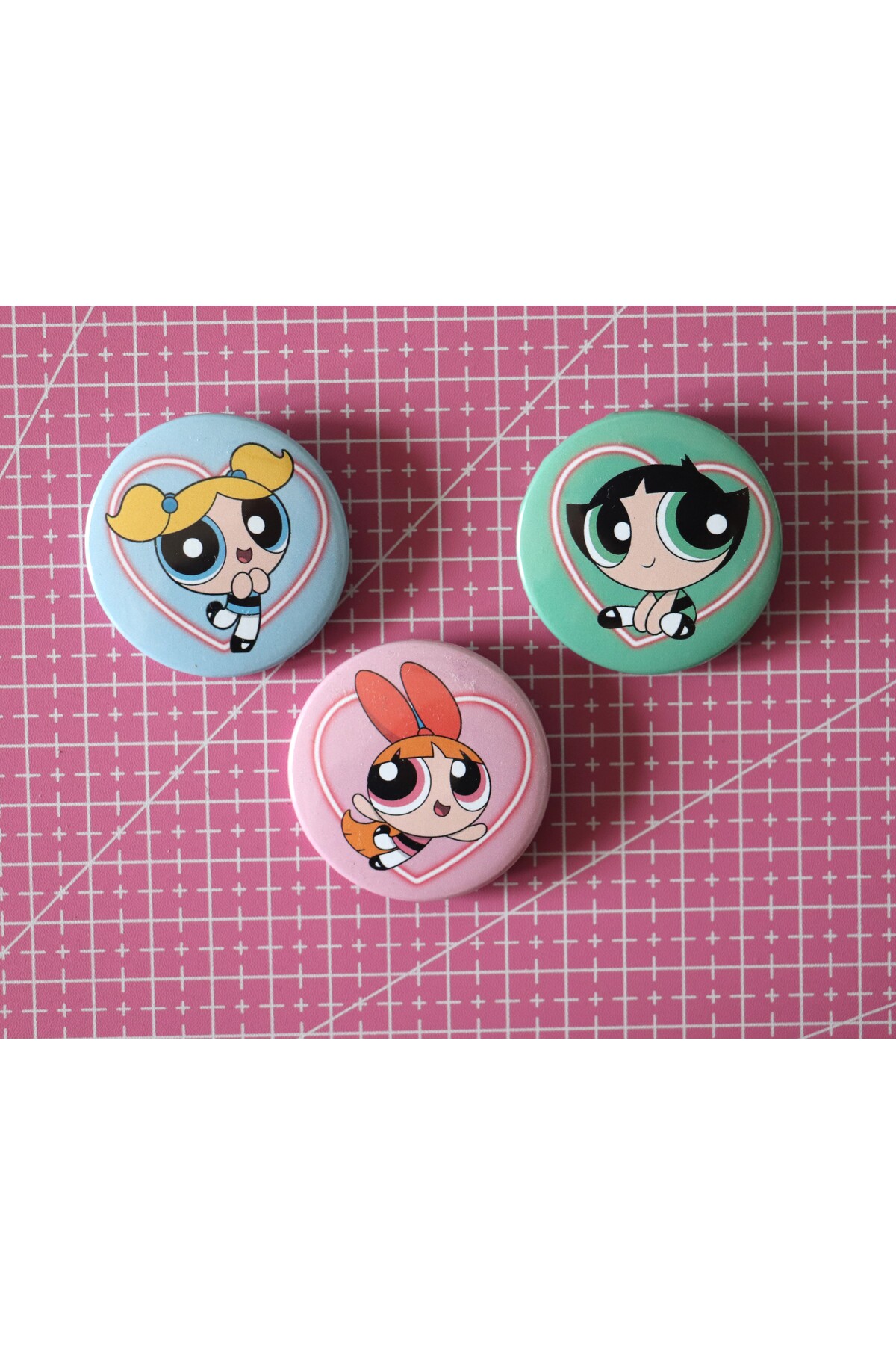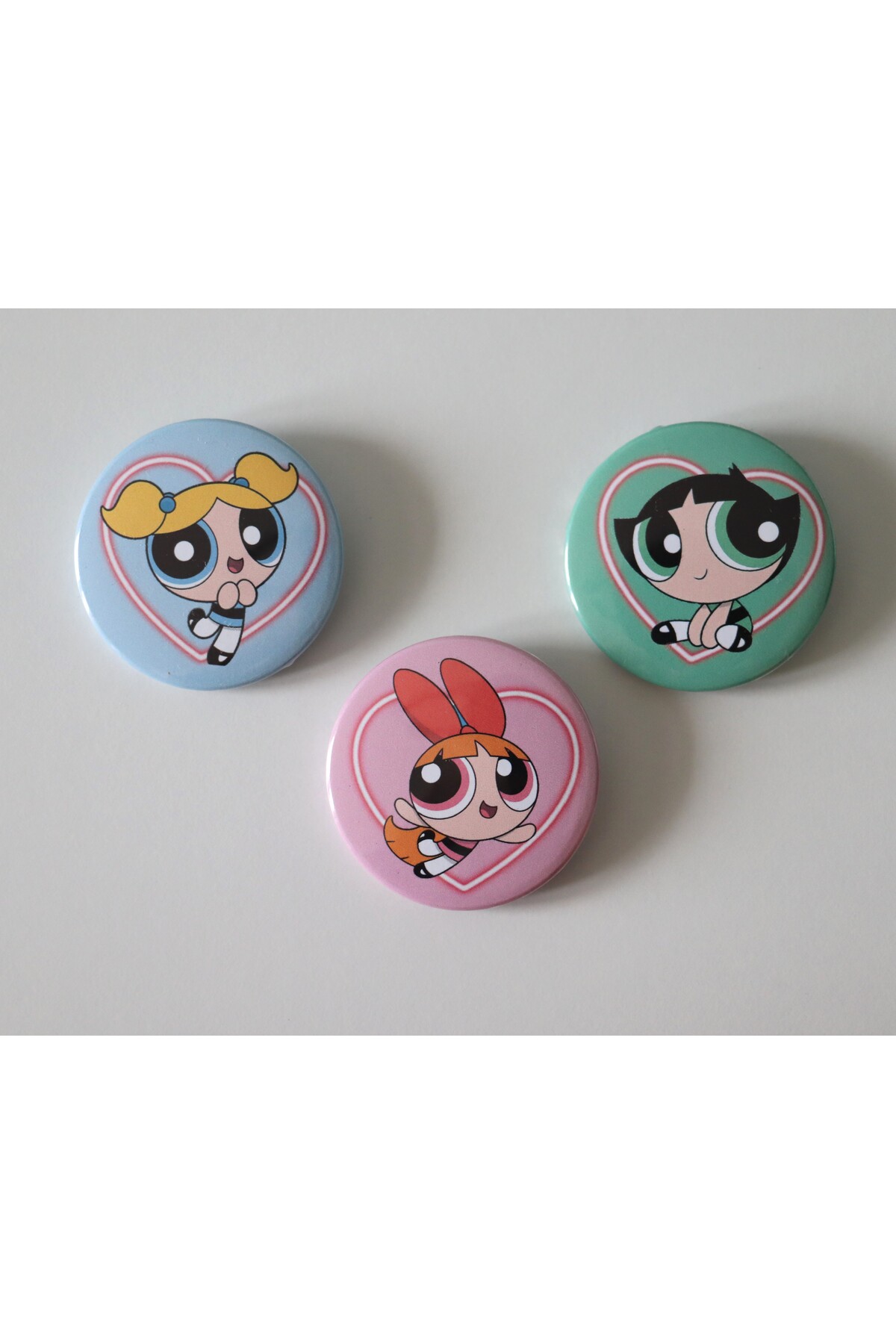 Powerpuff Girls Bubbless - Buttercup - Blossom 3lü Çanta Süsü Rozet-İğneli Buton Rozet Seti