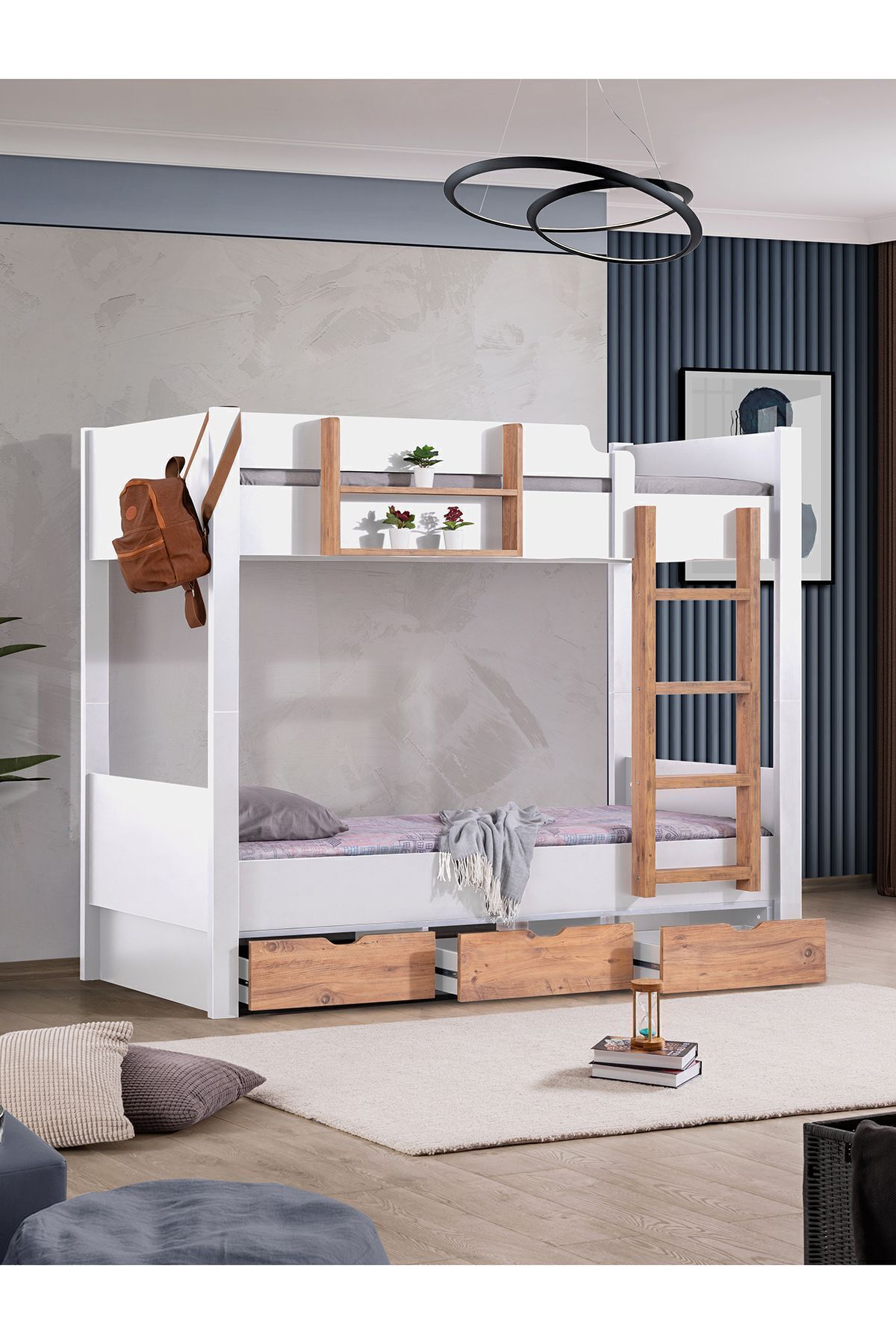 ASYA AYRILABİLİR ÇEKMECELİ RANZA ÖZELLİKLERİ Ana malzeme: 1. sınıf melamin kaplı yonga levha malzemeden üretilmiştir.