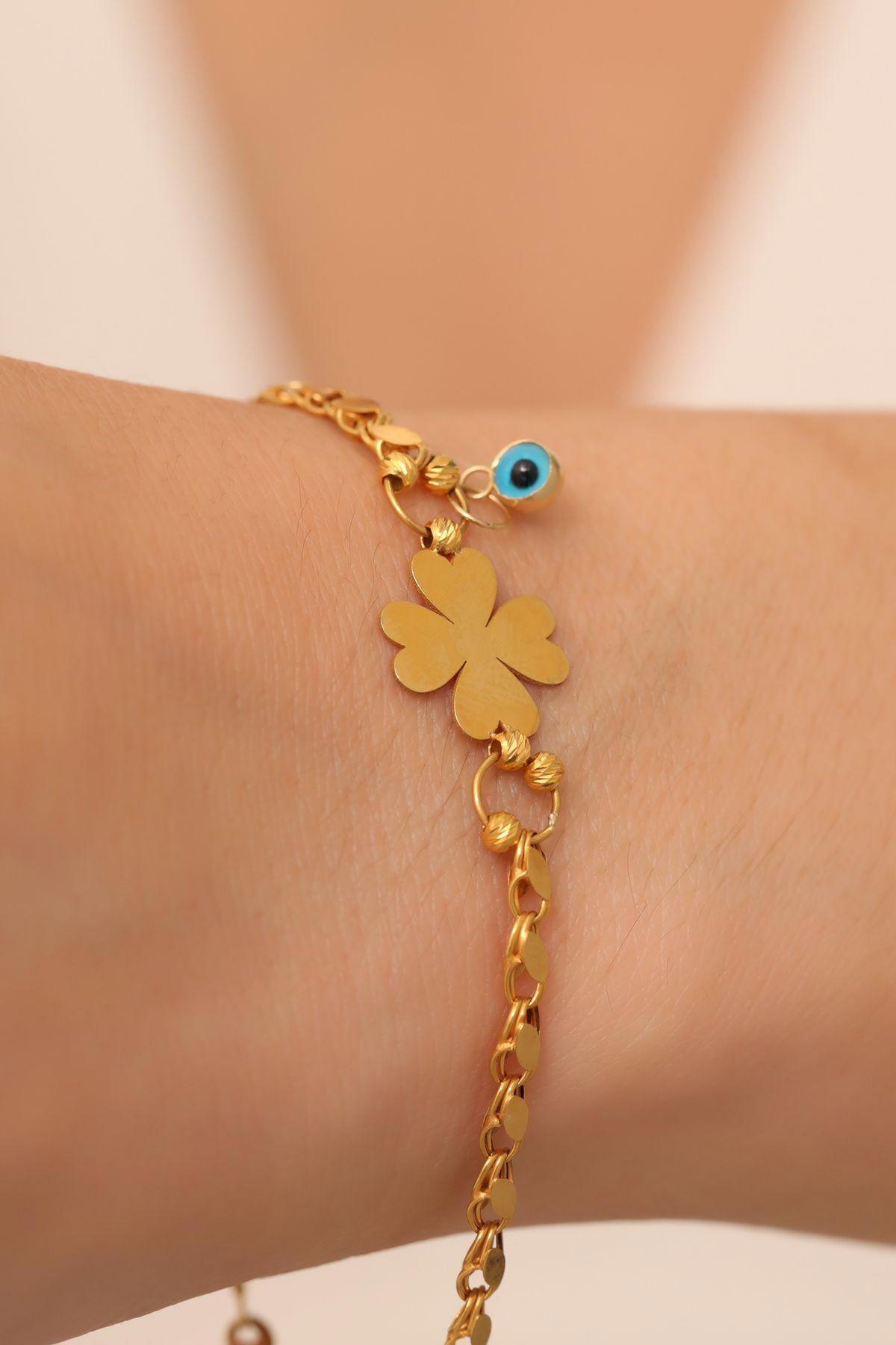 14 Ayar Altın Halep Yonca Bileklik