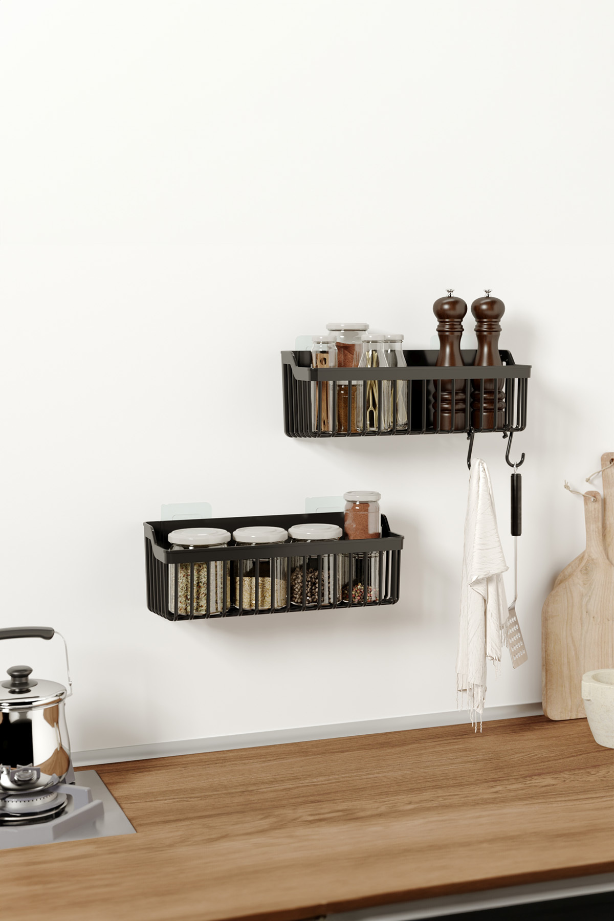 Tezgah üstü yapışkanlı baharatlık rafı Paslanmaz veya boya akması yapmaz.