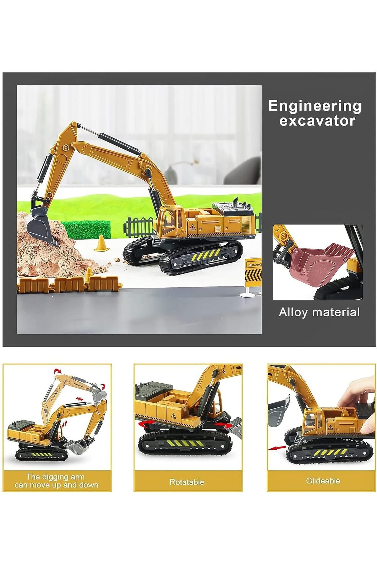 Oyuncak palet tasarımı, gerçek bir ekskavatörün hareketlerini taklit ederek çocukların hayal gücünü genişletir ve inşaat oyunlarını daha gerçekçi hale getirir