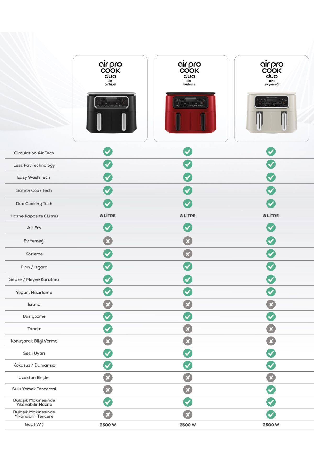 Duo Tech özelliği sayesinde 3 farklı pişirme modunda dilediğiniz gibi yemeğinizi hazırlayabilirsiniz.