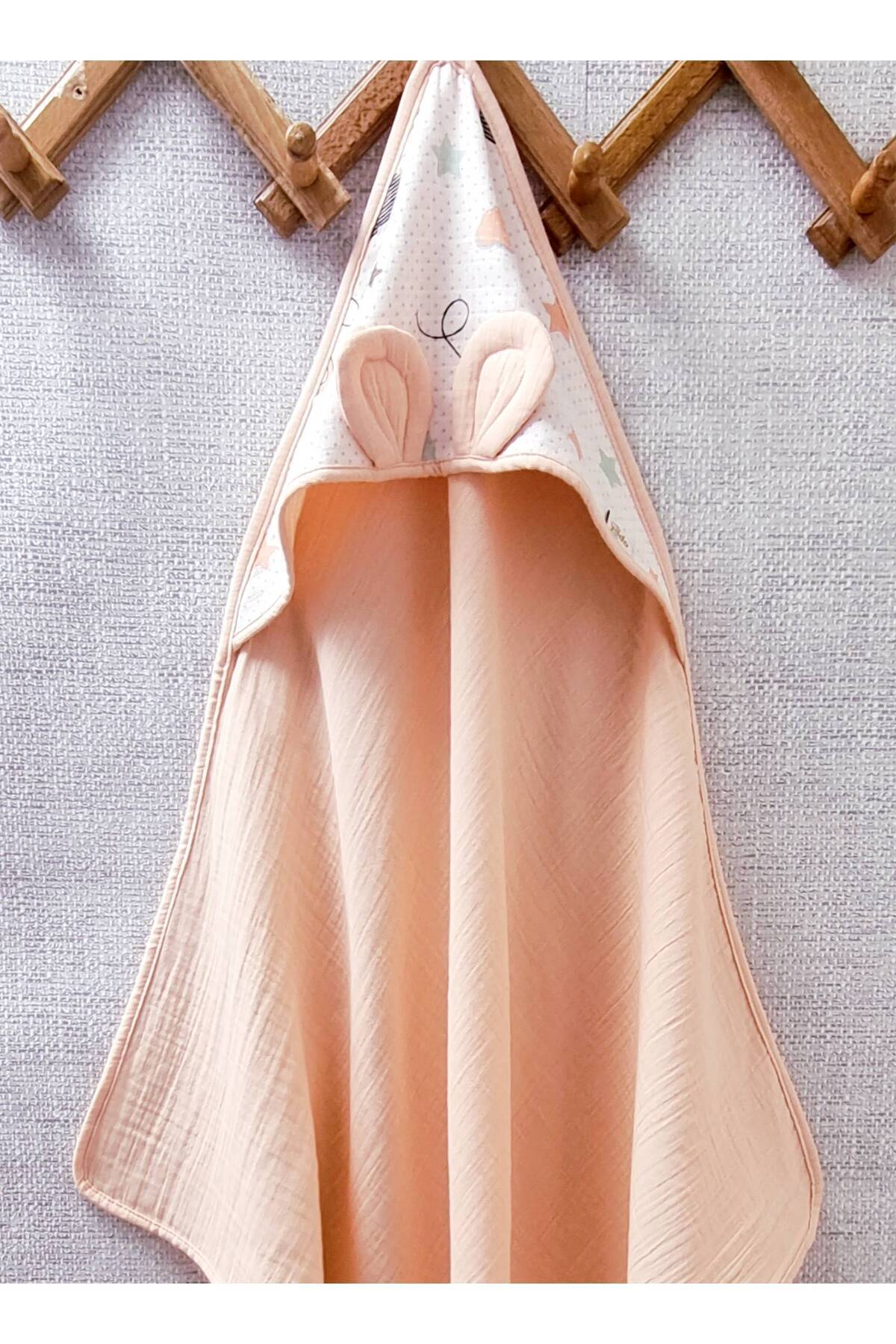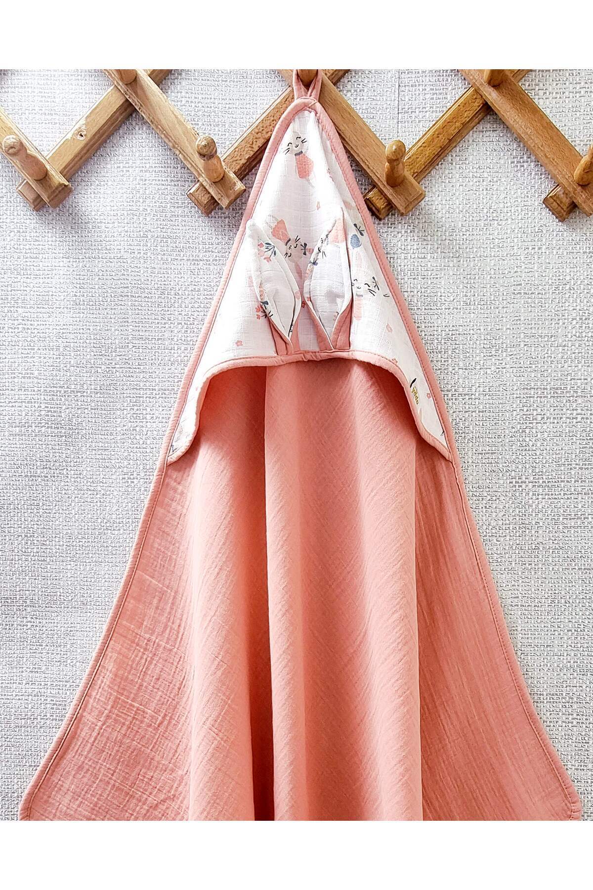 Renk ve desen seçenekleriyle İki Kat Bürümcük-Müslin kumaştan Kulaklı- Başlıklı bebek kundak havlususu