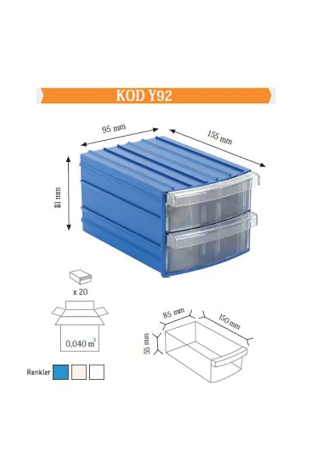 • *Renk: Dışı Mavi, Çekmeceler Şeffaf.