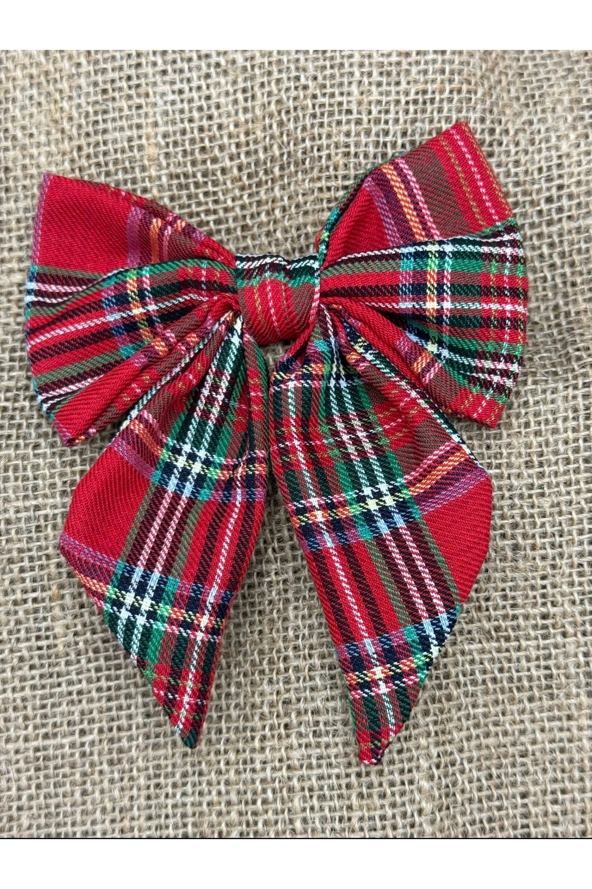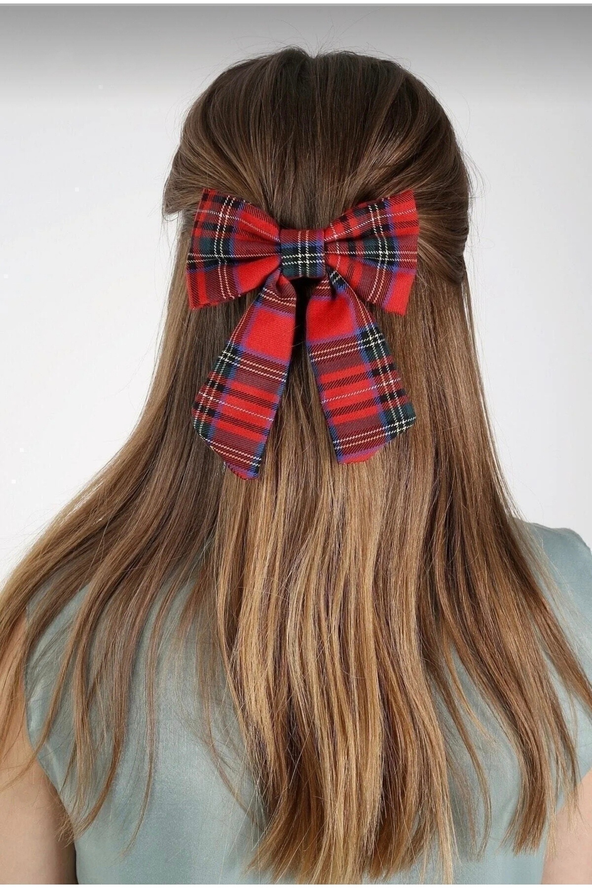 El emeği ile üretilmiş, her biri eşsiz ve benzersiz kırmızı ekoseli fiyonk tokamız, saçlarınızı şık ve zarif bir şekilde toplamanız için idealdir.