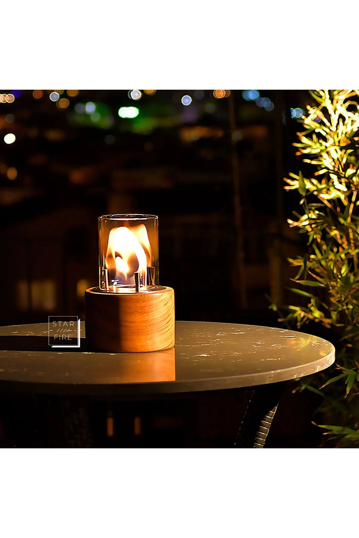 Starfire Galata Masaüstü Bioethanol Şömine Iroka ağacından üretilmiş bu ürün, ahşabın kendi dokusunu yansıtmaktadır.