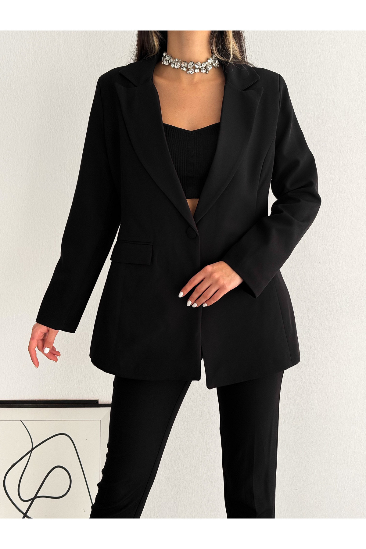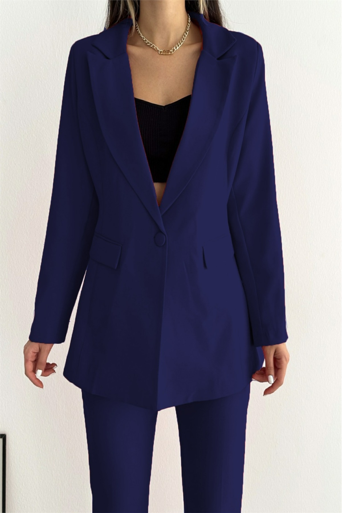 Uzun boy kesimi ile zarif ve profesyonel bir siluet oluşturur