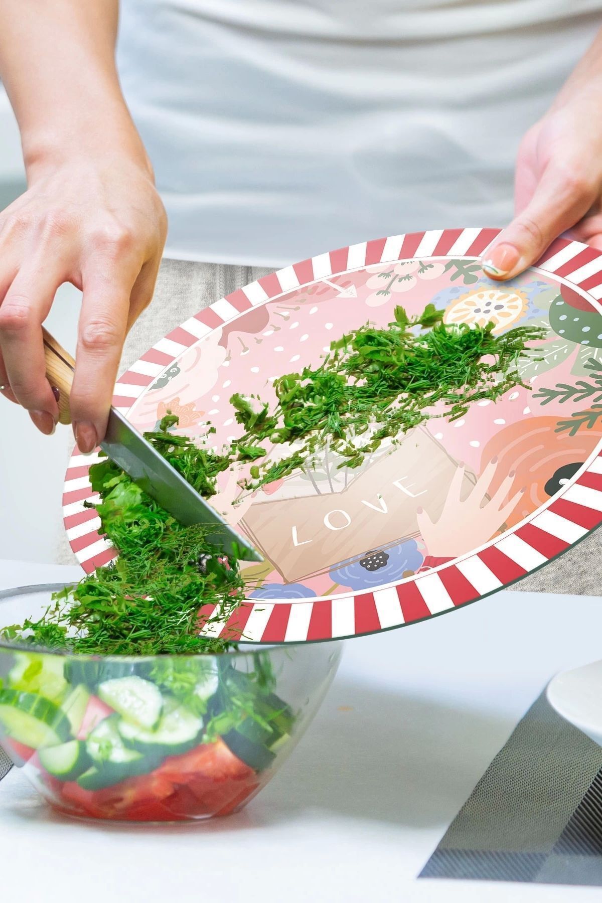 Kesme tahtası, hem günlük yemek hazırlıkları hem de özel davetlerde pratik bir yardımcıdır.