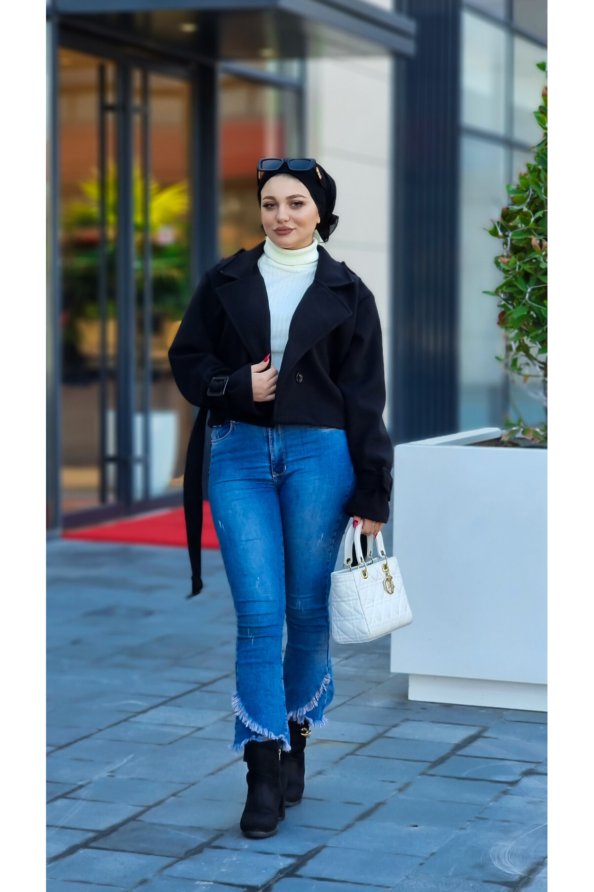 Uzun boy tasarımı ile hem şıklığı hem de tesettür giyim standartlarına uygunluğu bir arada sunar