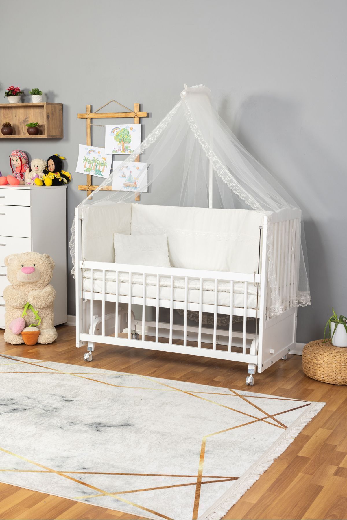 - Klasik tasarımıyla her yatak odasına uyum sağlayan ahşap beşik, zamansız bir şıklık sunar