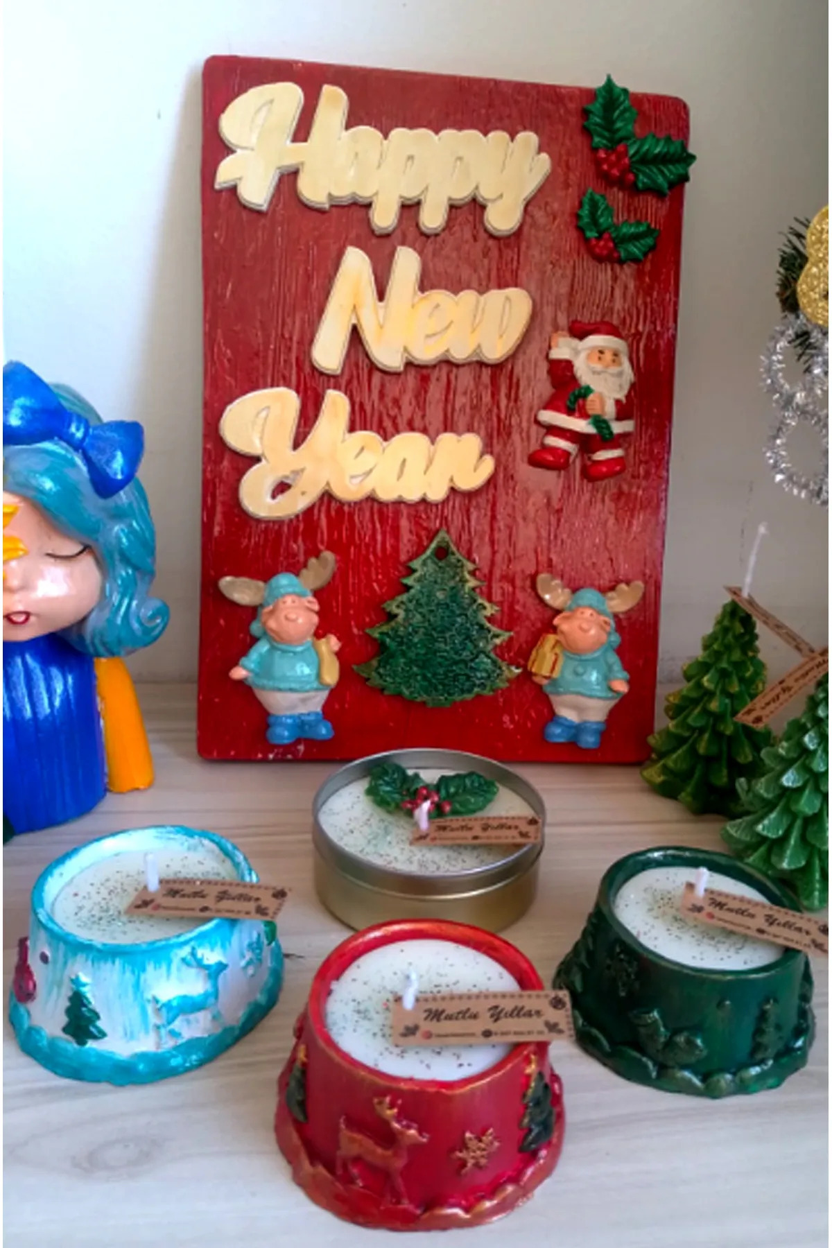 Vanilya kokusuyla evinizi sıcak ve davetkar bir atmosfere büründüren kokulu mum mumluk, yılbaşı konseptli tasarımıyla dekorasyonunuzu tamamlar