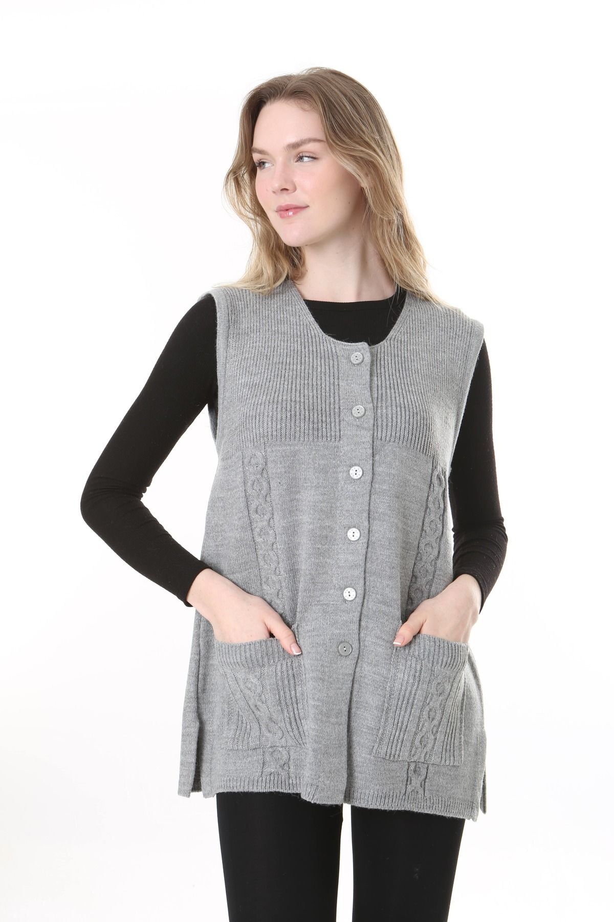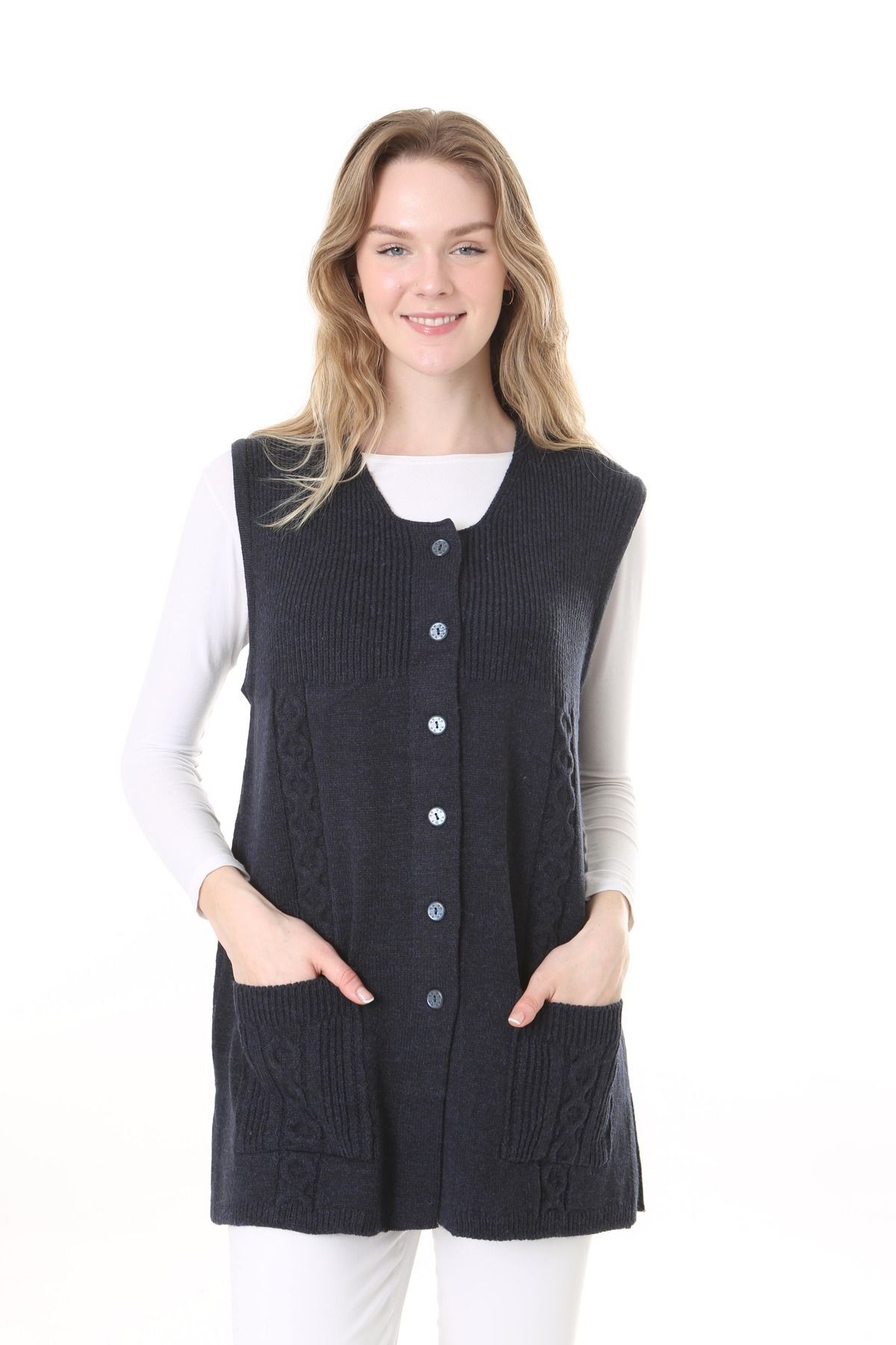V yaka kesimiyle feminen çizgileri ön plana çıkartırken, düğmeli kapama şekli pratiklik ve şıklığı bir arada getirir.