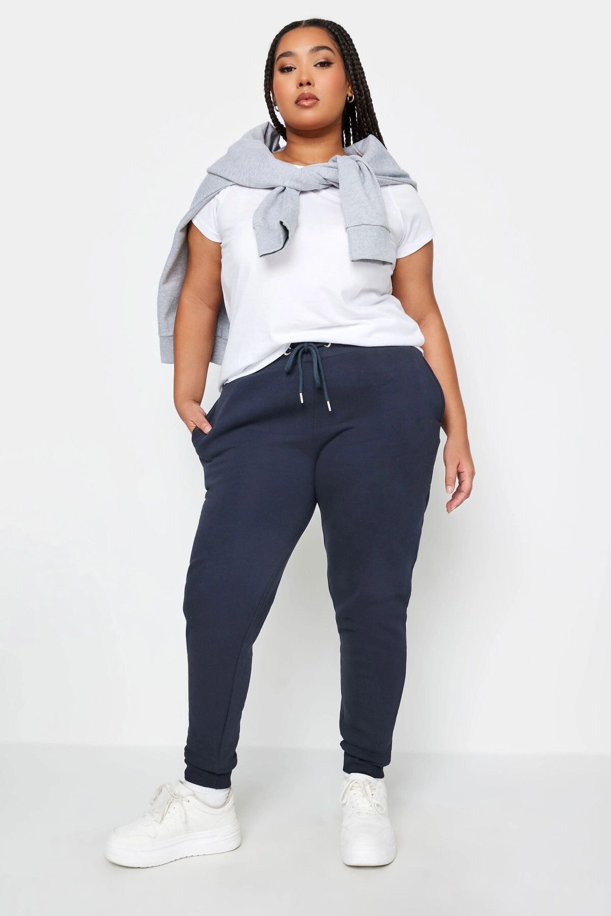 Bu büyük beden beli ve paçası lastikli dar paça jogger eşofman altı, rahat ve şık bir stil sunar.