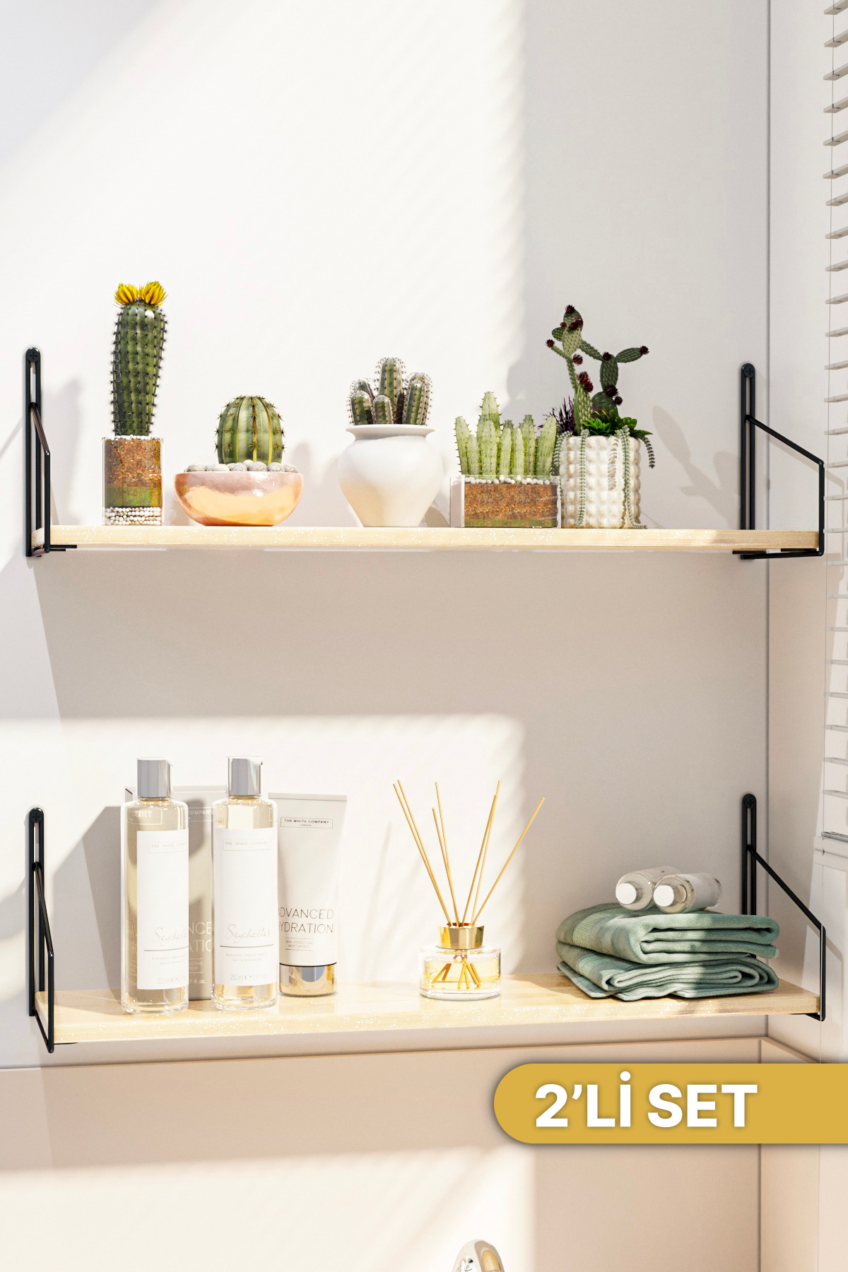 2'li set olarak sunulan raf, paslanmaz çelik konstrüksiyonu ve sağlam masif ahşap yapısıyla dayanıklıdır.