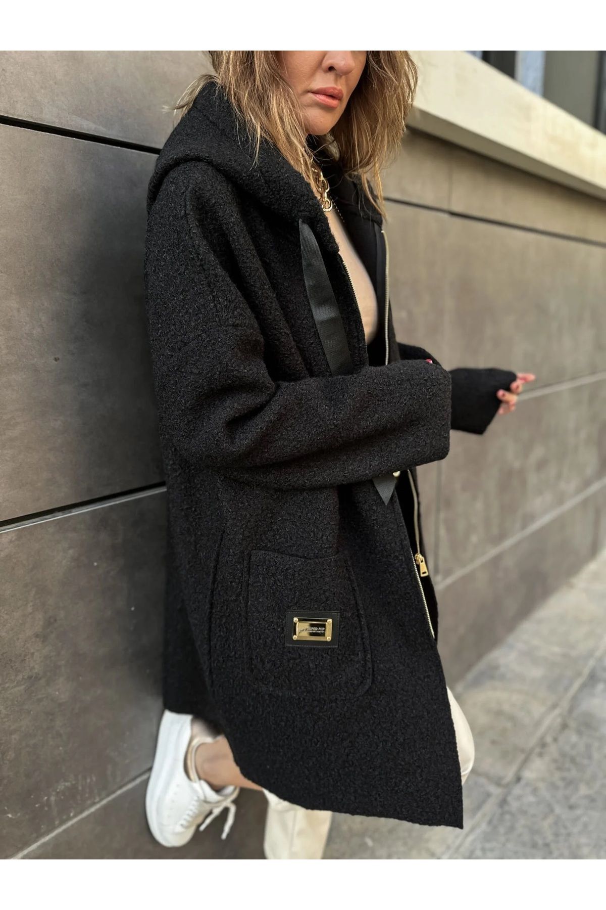 Kapüşonlu yaka tipi ile soğuk havalarda baş ve boyun bölgesini korurken stil sahibi bir görünüm kazandırır