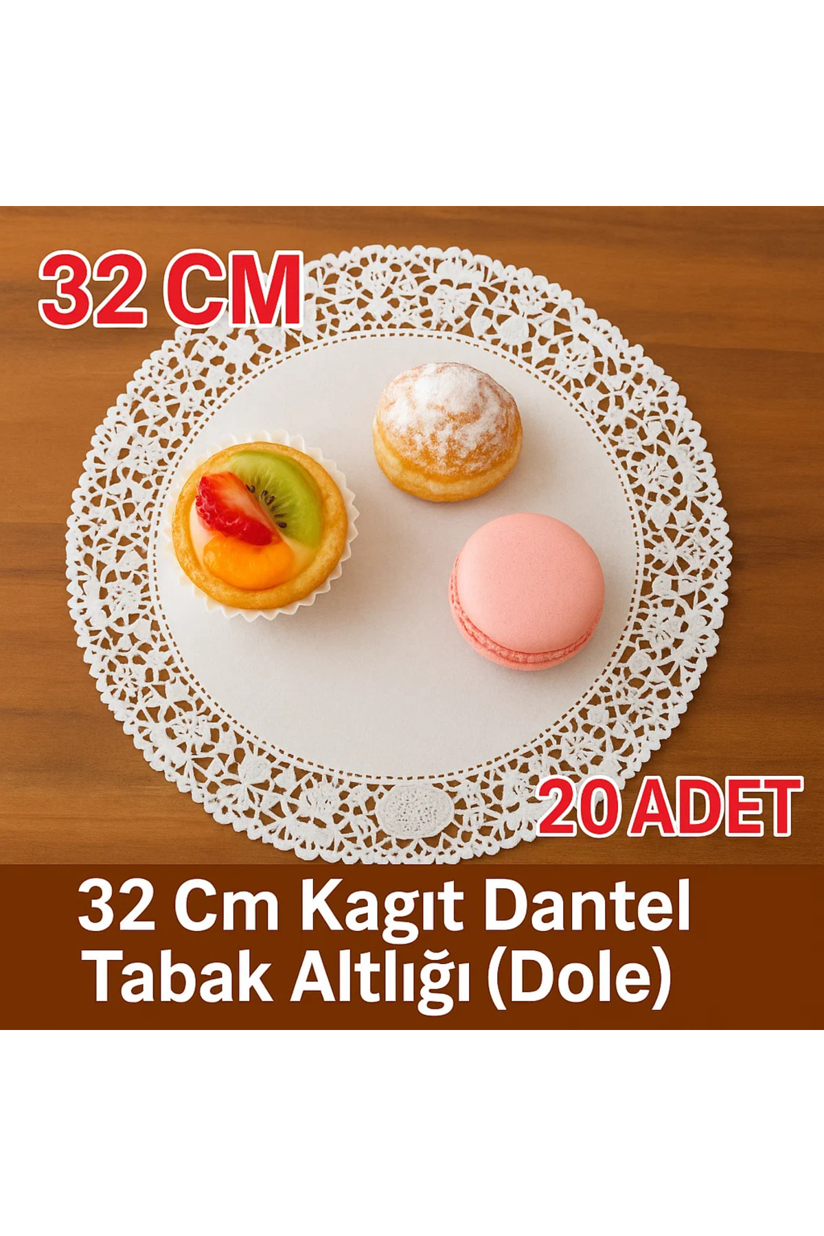 Bu set, 20 adet kağıt dantel tabak altlığından oluşur ve 32 cm çapındadır, büyük boy tabaklarınıza mükemmel bir uyum sağlar.