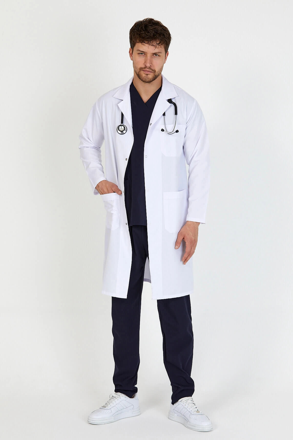 Erkek Klasik Yaka Uzun Boy Beyaz Öğretmen ve Doktor Önlüğü, Erkek Klasik Yaka Uzun Boy Doktor Önlüğü, üst 1 cep ve alt 2 cepli tasarımı ile alpaka kumaş doktor önlüğü, intern önlüğü, öğretmen önlüğü, veteriner önlüğü, hastane önlüğü, beyaz önlük ve eczacı önlüğü olarak da kullanılabilir.