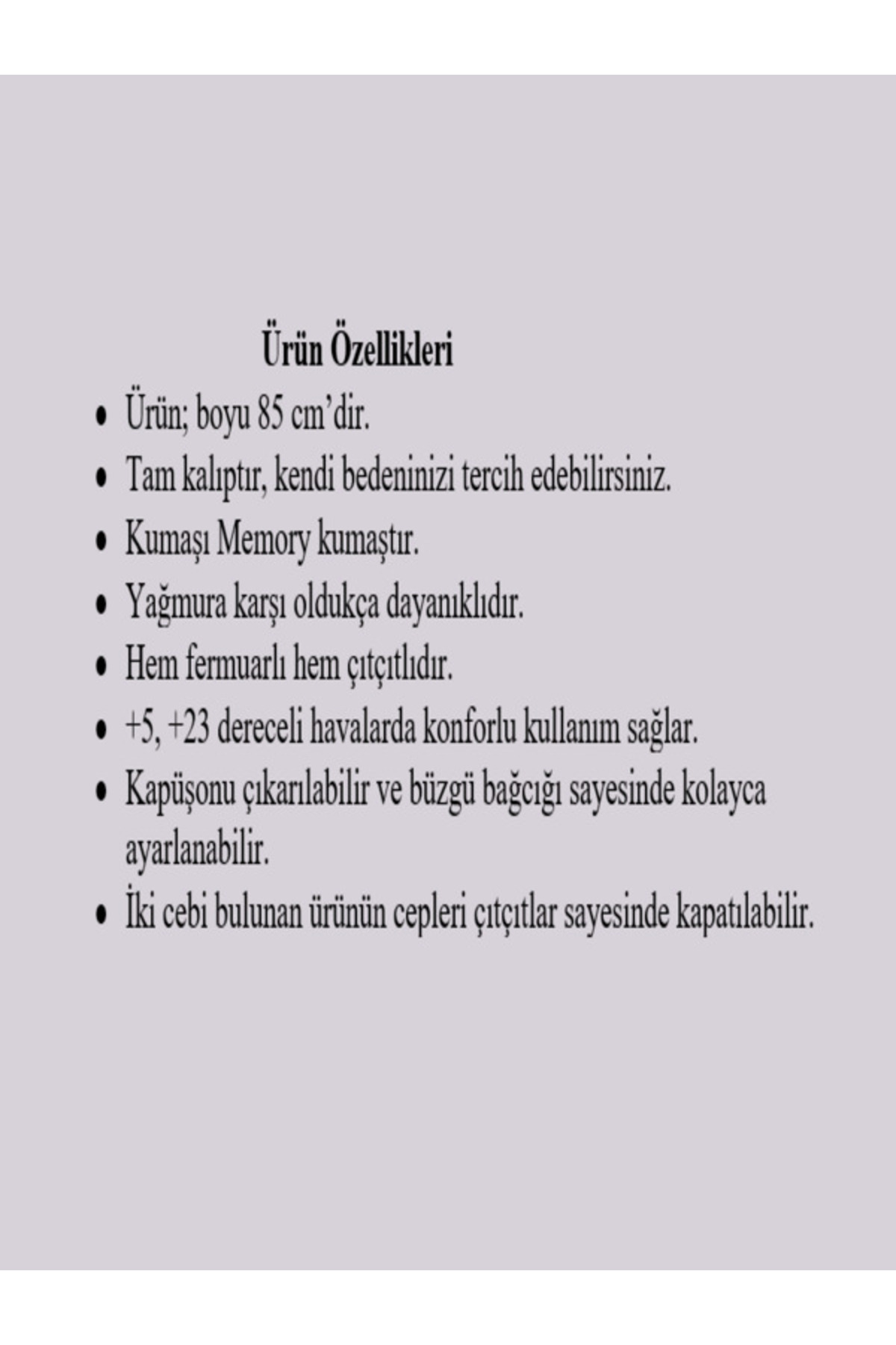- Çıt çıt ve fermuar kapama mekanizması, montunuzu kolayca giyip çıkarmayı mümkün kılar