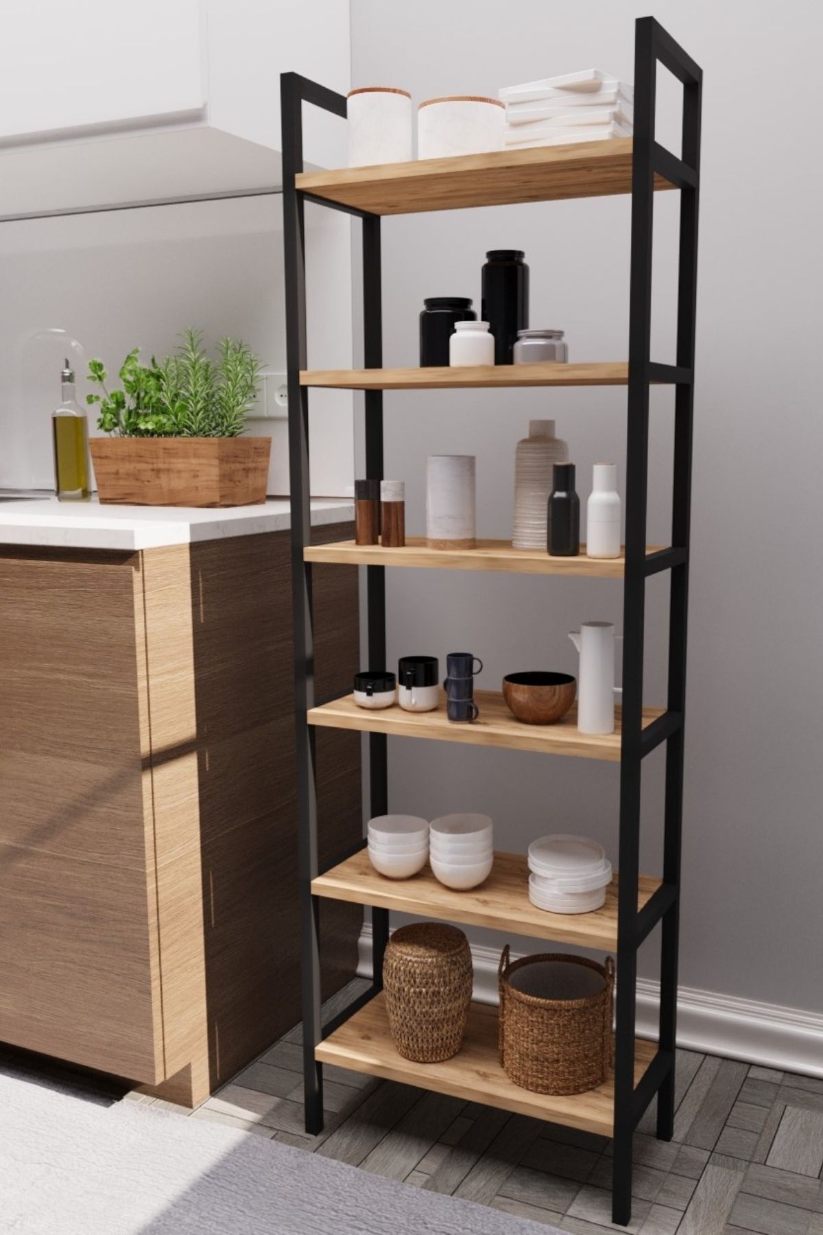 Bu sağlam ve şık raf, kitaplarınızı ve eşyalarınızı düzenli bir şekilde saklamanıza yardımcı olurken, aynı zamanda modern tasarımıyla çalışma odanıza şıklık katacak.