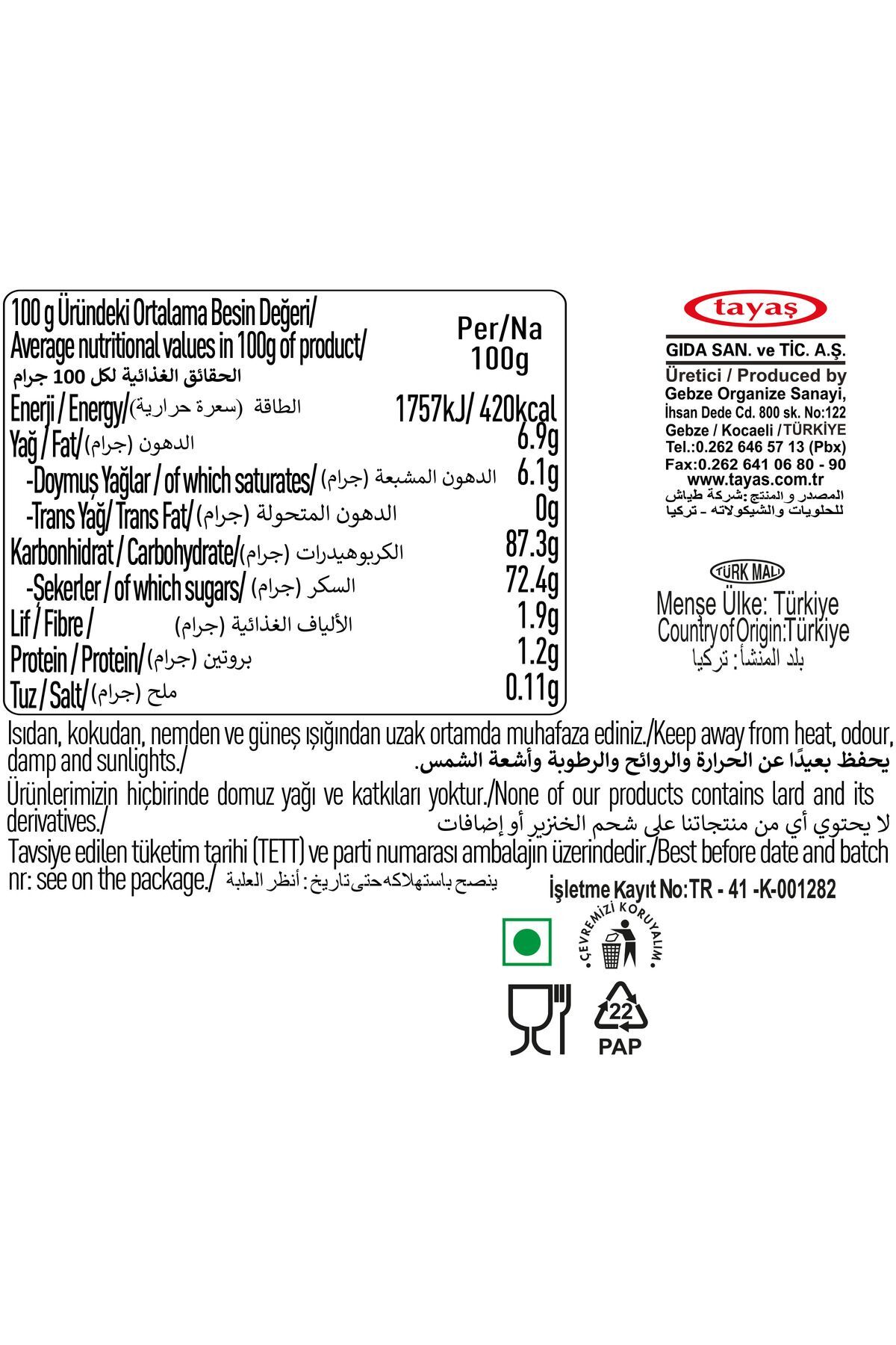 Ürün süt ürünleri içerir ve iz miktarda fındık, yer fıstığı ve diğer yemişleri içerebilir.
