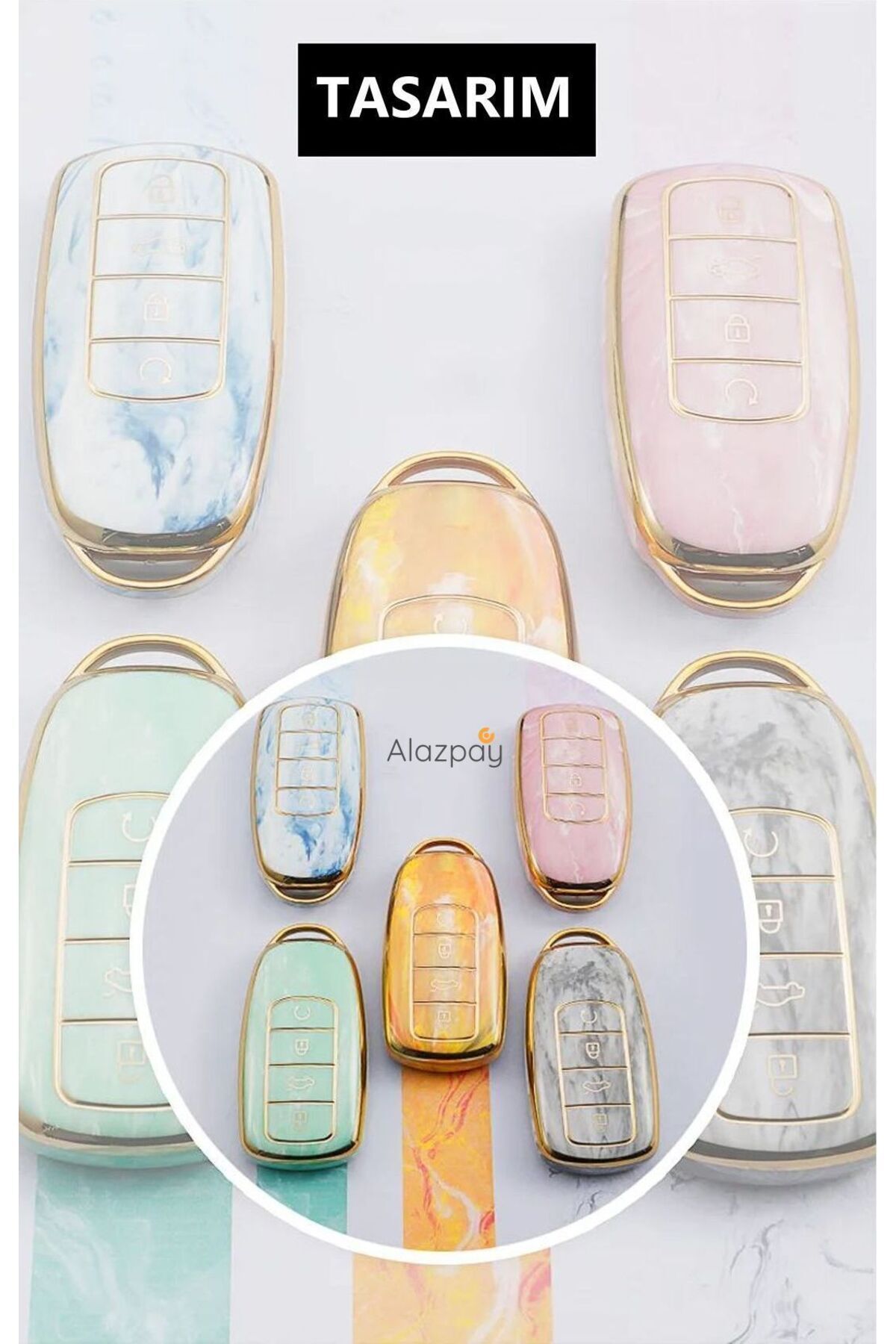 Mermer desenli pembe renk seçeneğiyle, aracınızın anahtarını korurken aynı zamanda estetik bir görünüm kazandırır